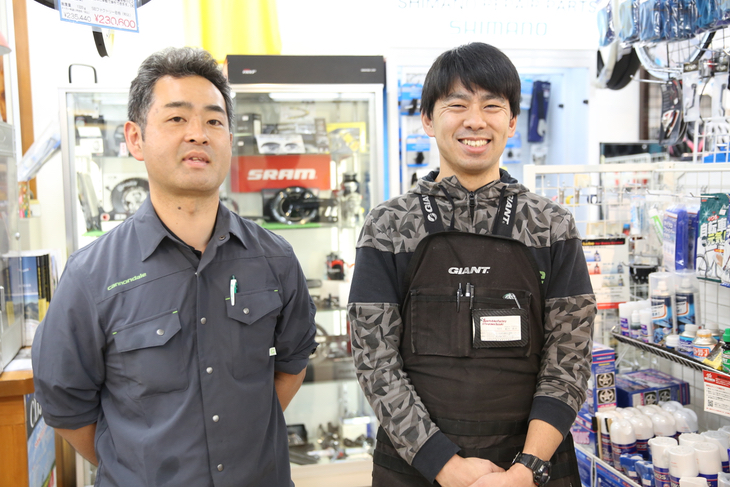 そんな北浦和スズキで腕を振るうのは、代表取締役の鈴木卓史さんと店長の山﨑翔一さんら4名。もちろん全員が根っからの自転車好きで、自ら走る、いじる、接客とこなすマルチプレイヤー。「大型店のような規模ではありませんが、そのぶんお客様に安心してオススメできるバイクやパーツ、ウェアなどをセレクトして在庫しています。クロスバイクを購入された方でも、"プロショップで買う"というプレミア感を感じて頂けるショップを目指しています」と鈴木さんは言う。