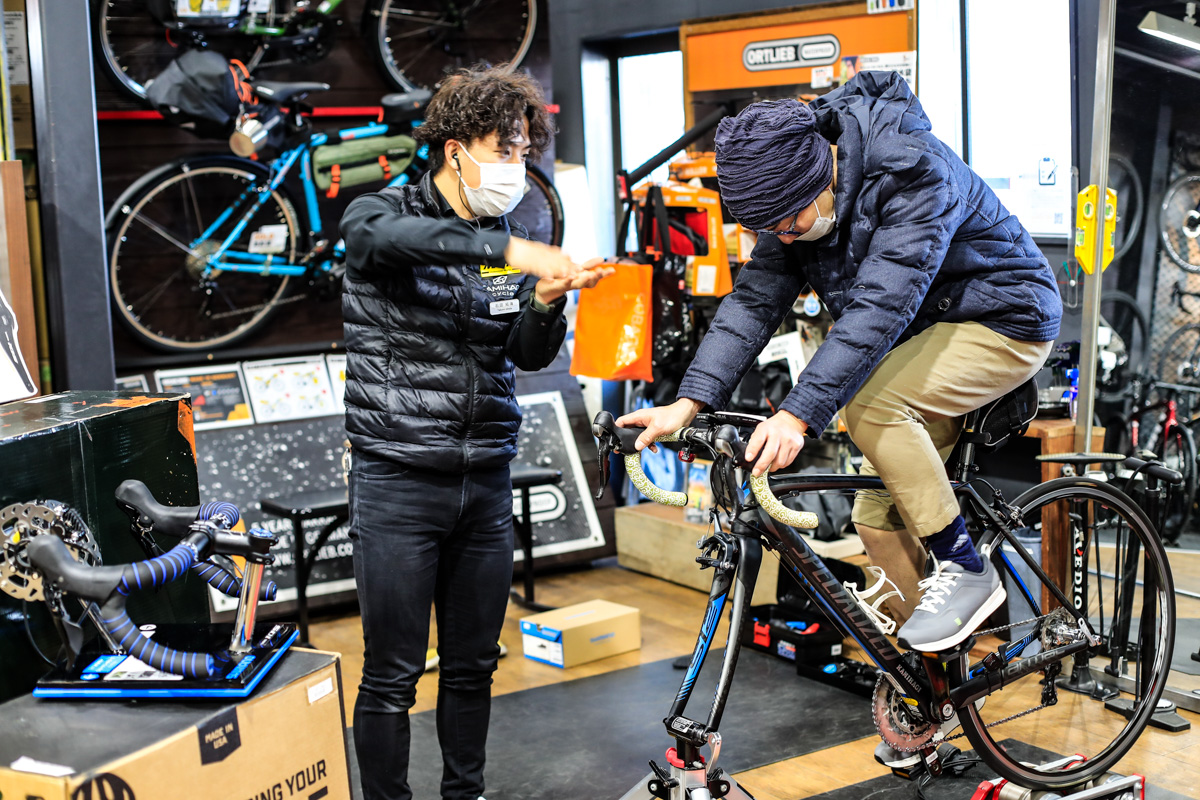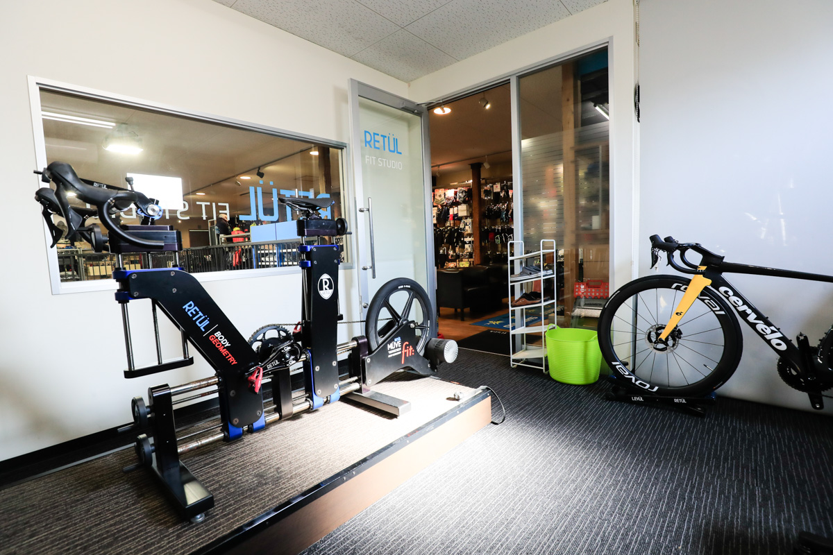 2階部分に新設されたのがRETULのフィッティングルームだ。専用マシン「RETUL Müve(ムーヴ)」や3Dモーションキャプチャを導入。プロフィッターの資格を持ち、自らロードもMTBも楽しむ遠山裕司さんが中心となりフィトを行う。落ち着ける個室で丁寧に施術するフィッティングに満足度は高い。もちろんTTバイクのフィッティングもOKだ。カミハギサイクルでは今までに数百人という施術を積んできただけに、経験がものを言うフィッティングを受けるには安心と言えるだろう。