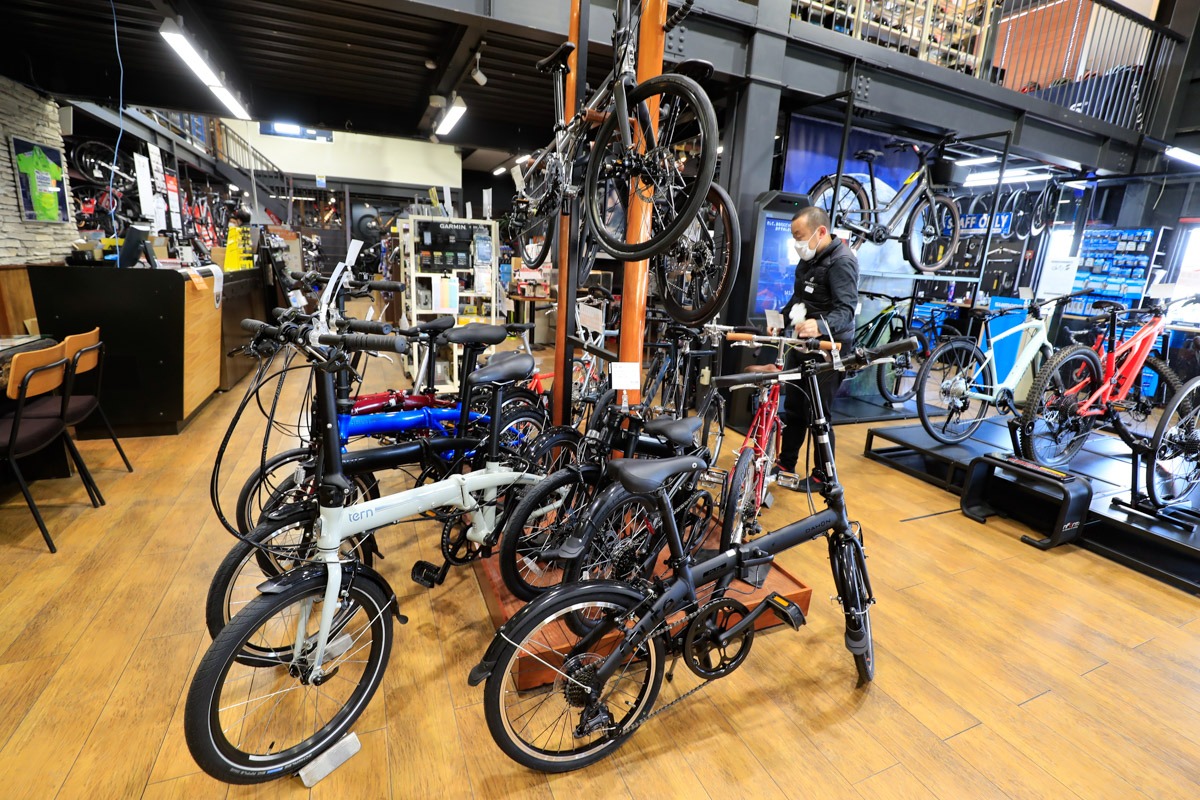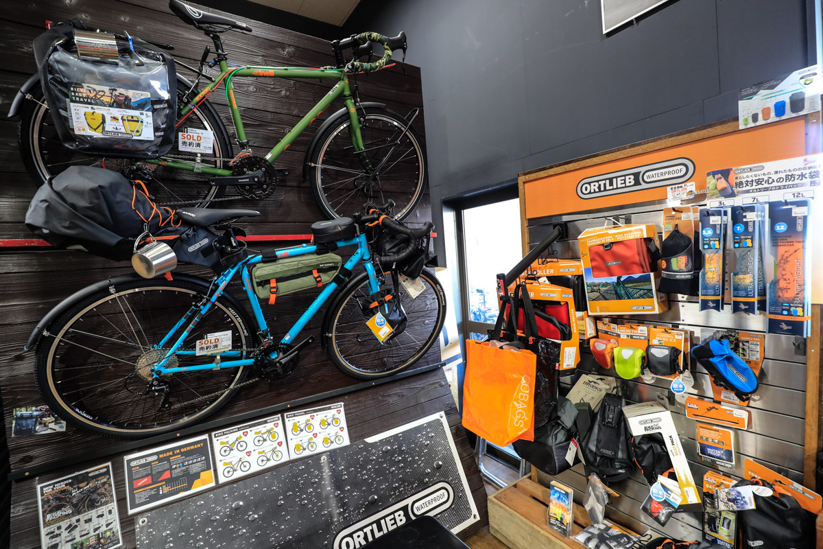 また店内にはこれらの高級ロードバイクに混じって女性に人気のビアンキのミニベロや、BD-1、ダホン、ターン、サーリー、ブロンプトンなどクロスバイクやタウンバイクもラインナップ。渋い雰囲気のツーリング車の姿もあって、商品ラインナップに色を添える。常に200台程度のバイクが陳列されているという。