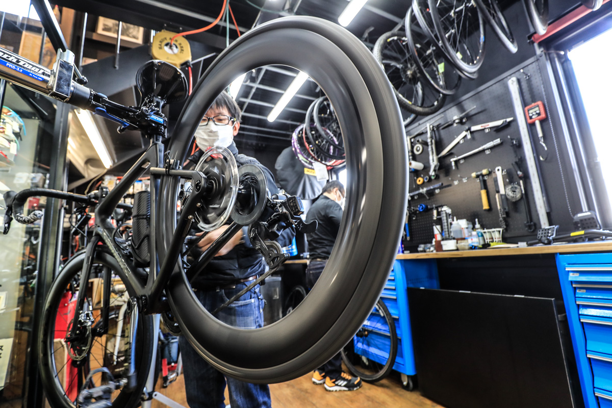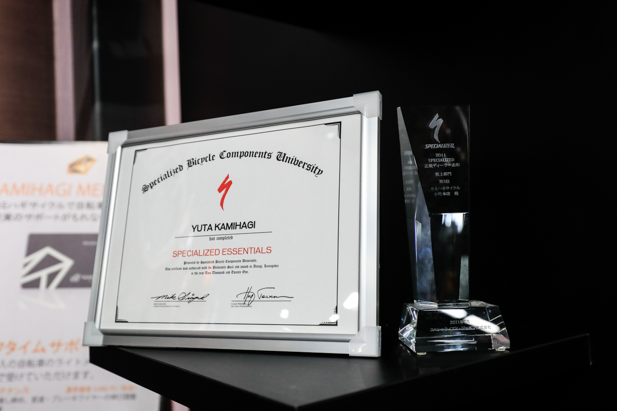 サービスの充実度に加えて、ショップ訪問を通して感じるのは、ガラス張りのメカニックスペース然り、デザインされたスタッフヤード然り、要所要所でショーアップされる気配りと、メカ作業に対する絶対的な自信と先進のフィッティングサービス...。決して安価では無いスポーツバイクを購入する場合でも、"カミハギなら大丈夫"という安心感が自然に芽生えるだろう。この方針を開店当初から曲げていないことには感心させられる。