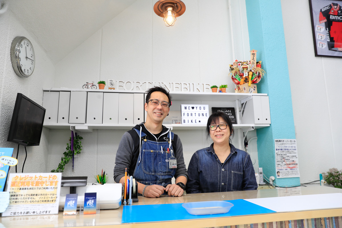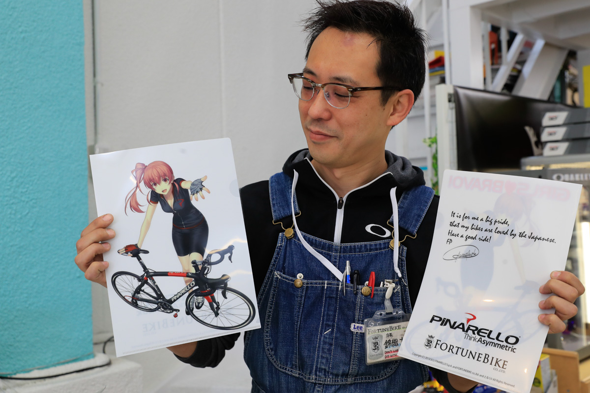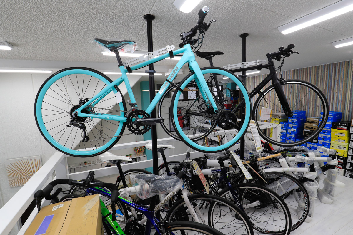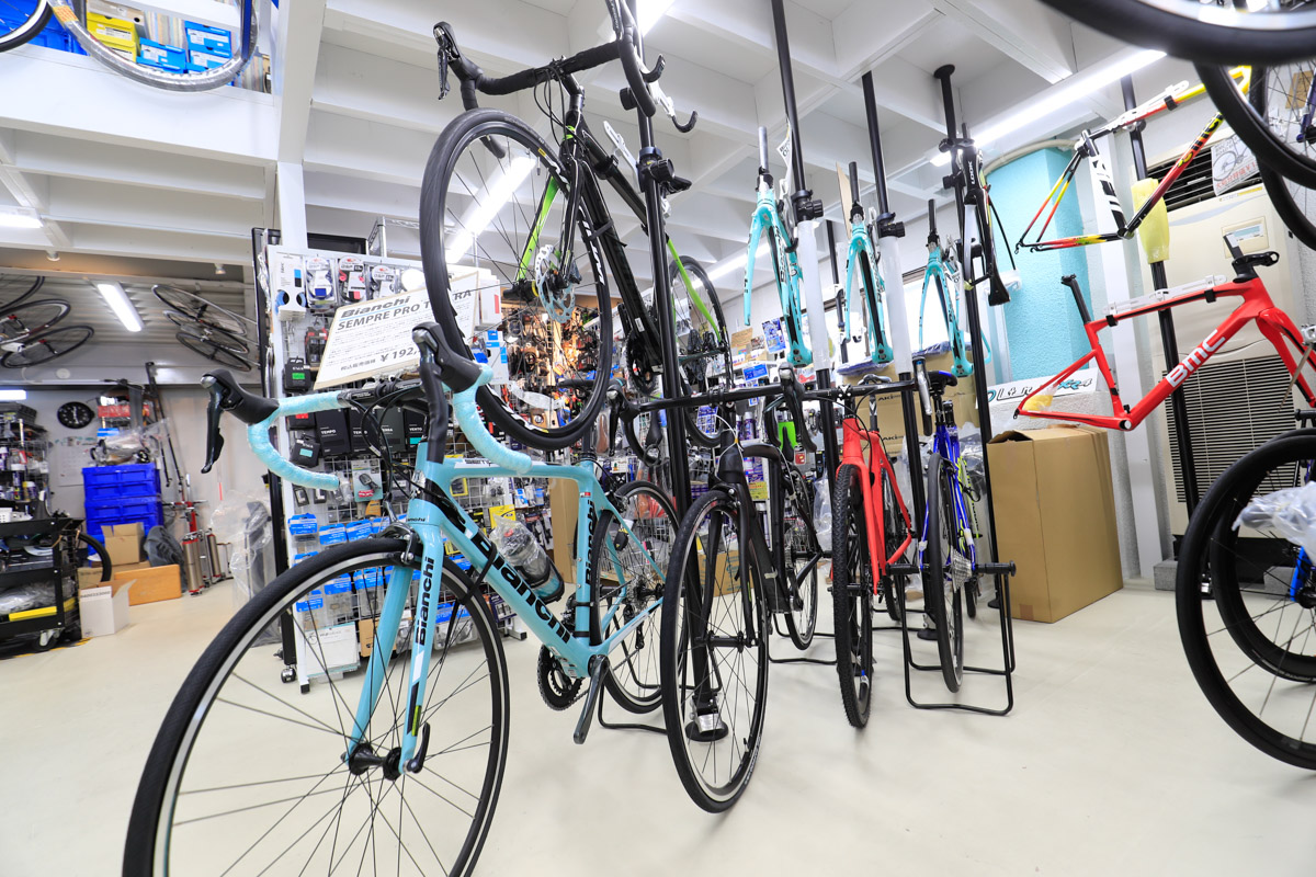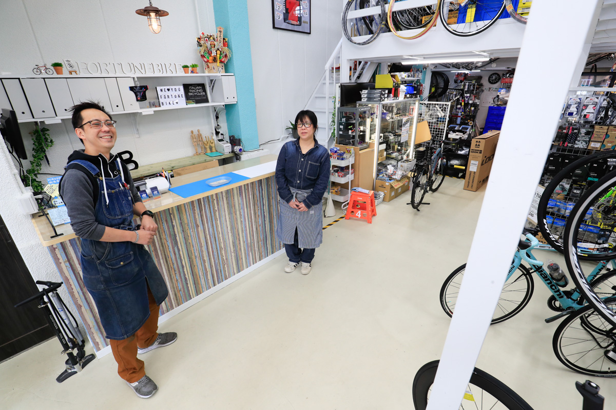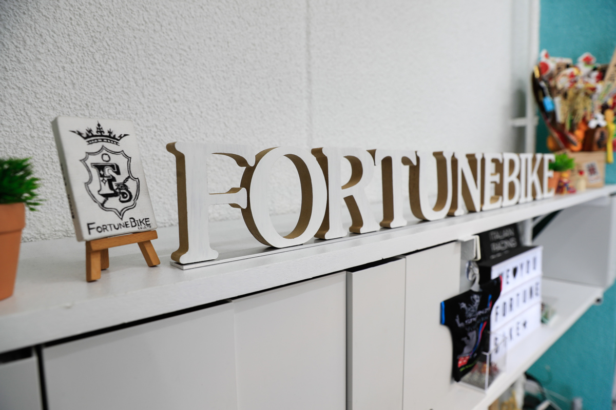 蔵前橋通り沿いを歩けば「BIKE GIVES YOU EVERYTHING IF YOU WANT(あなたが望むなら自転車はすべてを与えてくれる」というスローガンが目に入る。フォーチュンバイクはロードバイクなどオンロード系スポーツバイクがメインに並ぶスポーツバイク専門店だ。店内には20台ほどの完成車、20本ほどのロードフレームが展示される。ピナレロやビアンキ、BMCをはじめトレック、ジャイアント、ルック、スコット、チネリ、ラピエールのバイクがバリエーション豊富に並ぶ。