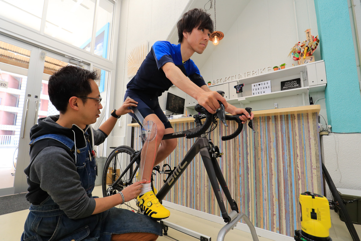 フォーチュンバイクもう1つの魅力はフィッティング。錦織さんは独立以前から様々なフィッティングシステムの研修会に参加し知識や経験を蓄積してきた。「身体を鍛えることなく、現状の体力で一番気持ちよく効率的に乗れることを目的としてフィッティングを行っています。海外のジュニア育成方針とも共通した考え方を取り入れているつもりです。」