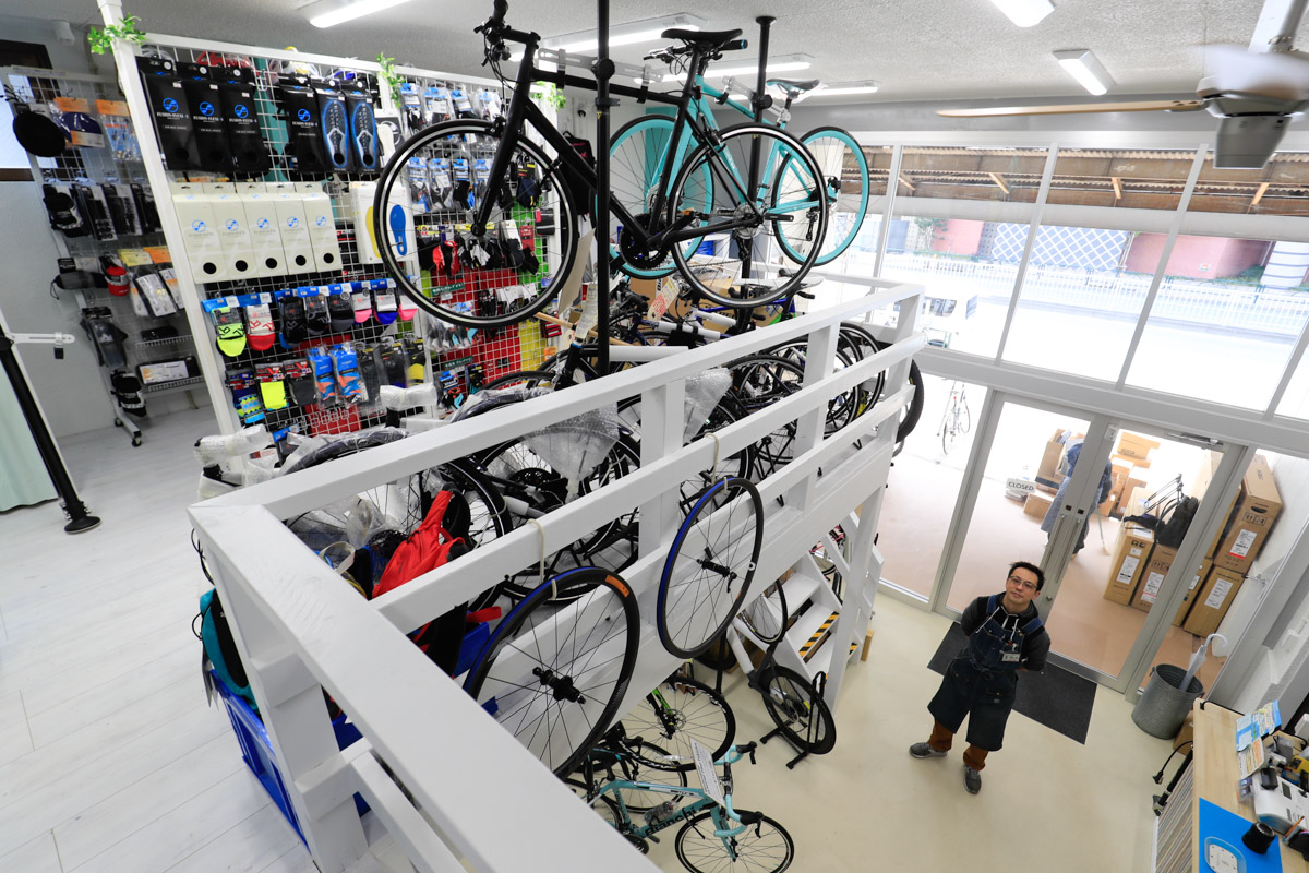 店長を務めるのは錦織大祐(にしこおり・だいすけ)さん。「新しいお店は前のお店よりも少し狭くなって、駅からも遠くなってしまうんですが、荒川サイクリングロードからは1.5kmぐらいとアクセスしやすくなって、そのぶん走っている方が立ち寄りやすいお店になりました。荒川を走る人に何かあったときに力になれるお店でありたいですね」と話す。