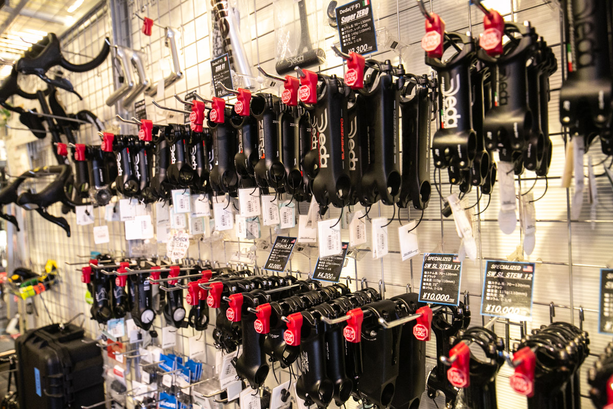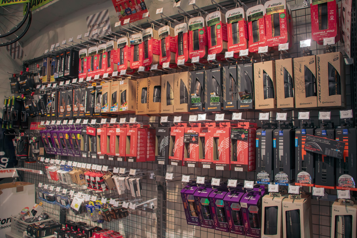 そして各メーカーのチューブラーやチューブレスタイヤなど、実走派サイクリストが必要とする商品も多く在庫され、しかも価格も安い。「安売りで有名だったかつてほどの価格設定ではないですが、チューブやタイヤなど消耗品はあえて安めに値付けしています。それはたくさん乗ってもらいたいという願いを込めているんです。お客様の視点での値付けを心掛けています。」