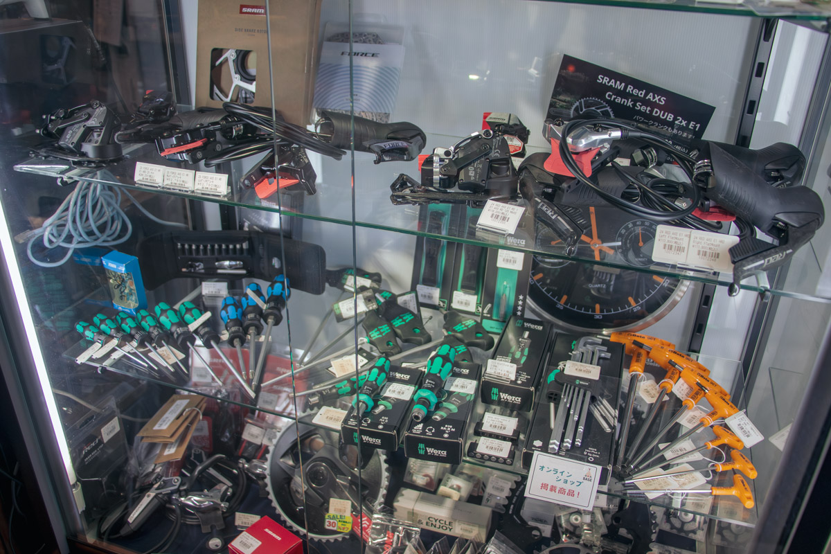そんな老舗中の老舗ショップだが、硬派なイメージと裏腹に、近年のロードバイク入門者の増加にもしっかり対応すべく、柔軟に変化してきた。店員さんの親切な接客態度は、入店してすぐに感じ取ることができる。