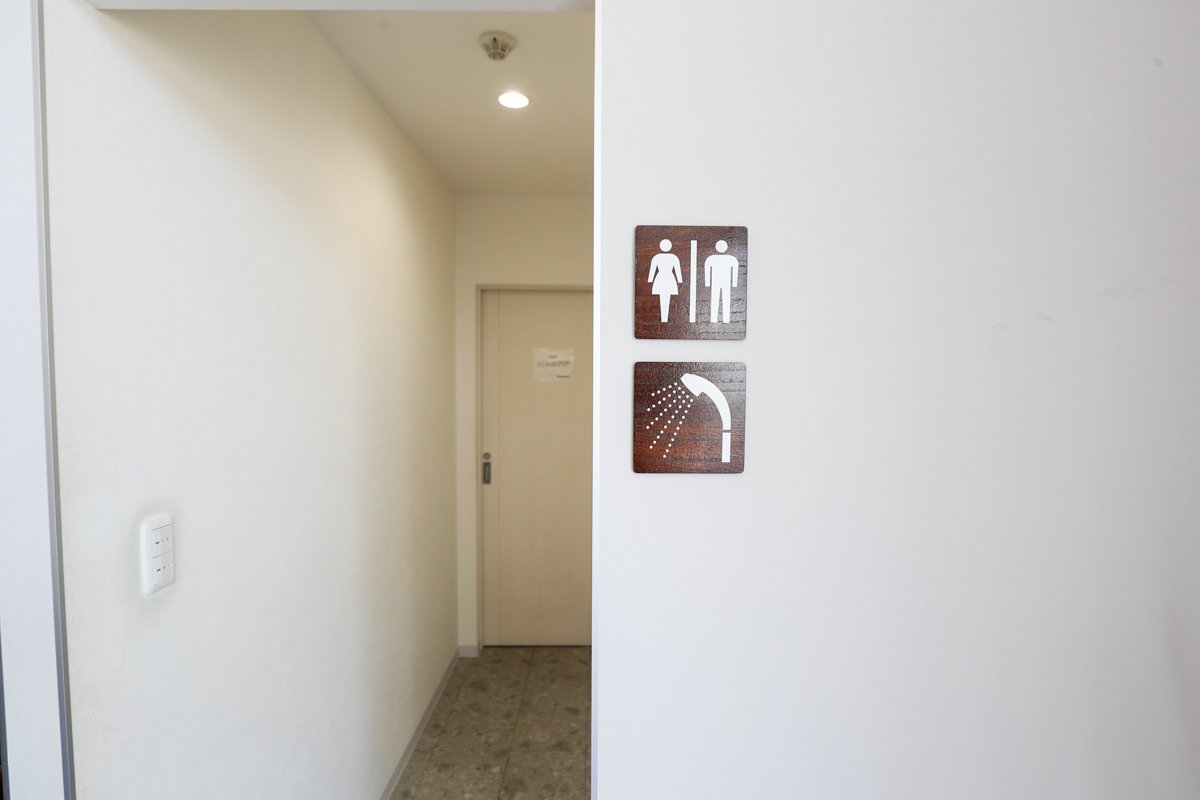 店内の右奥にはソファーが設置されたコーナーがあり、ウェアやシューズ、サングラスなどをゆったり選ぶことができるほか、休憩スペースにもなっている。そしてフィッティングルームにも大きくスペースが取られ、奥には商談室も設けられた。それらは別室となり、仕切りが設けられることでプライベートが保たれる空間となる。
