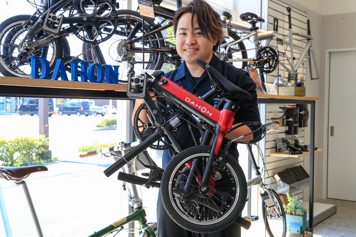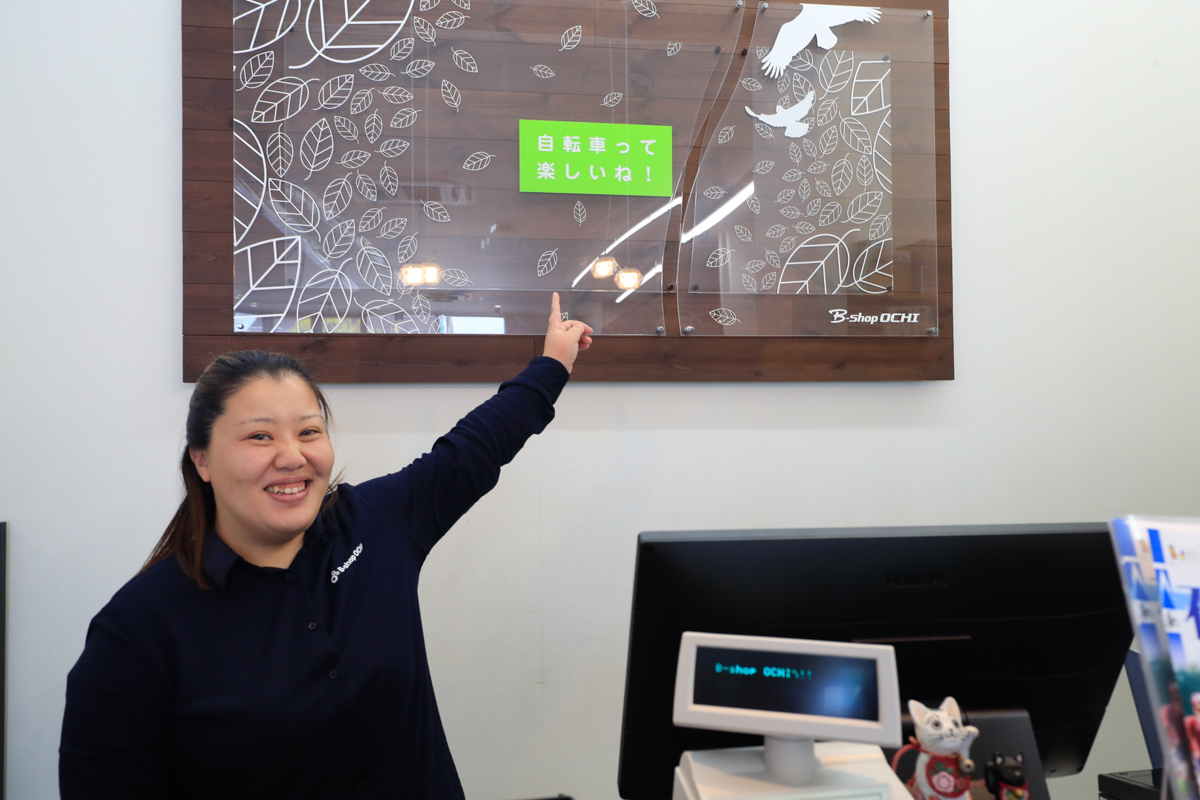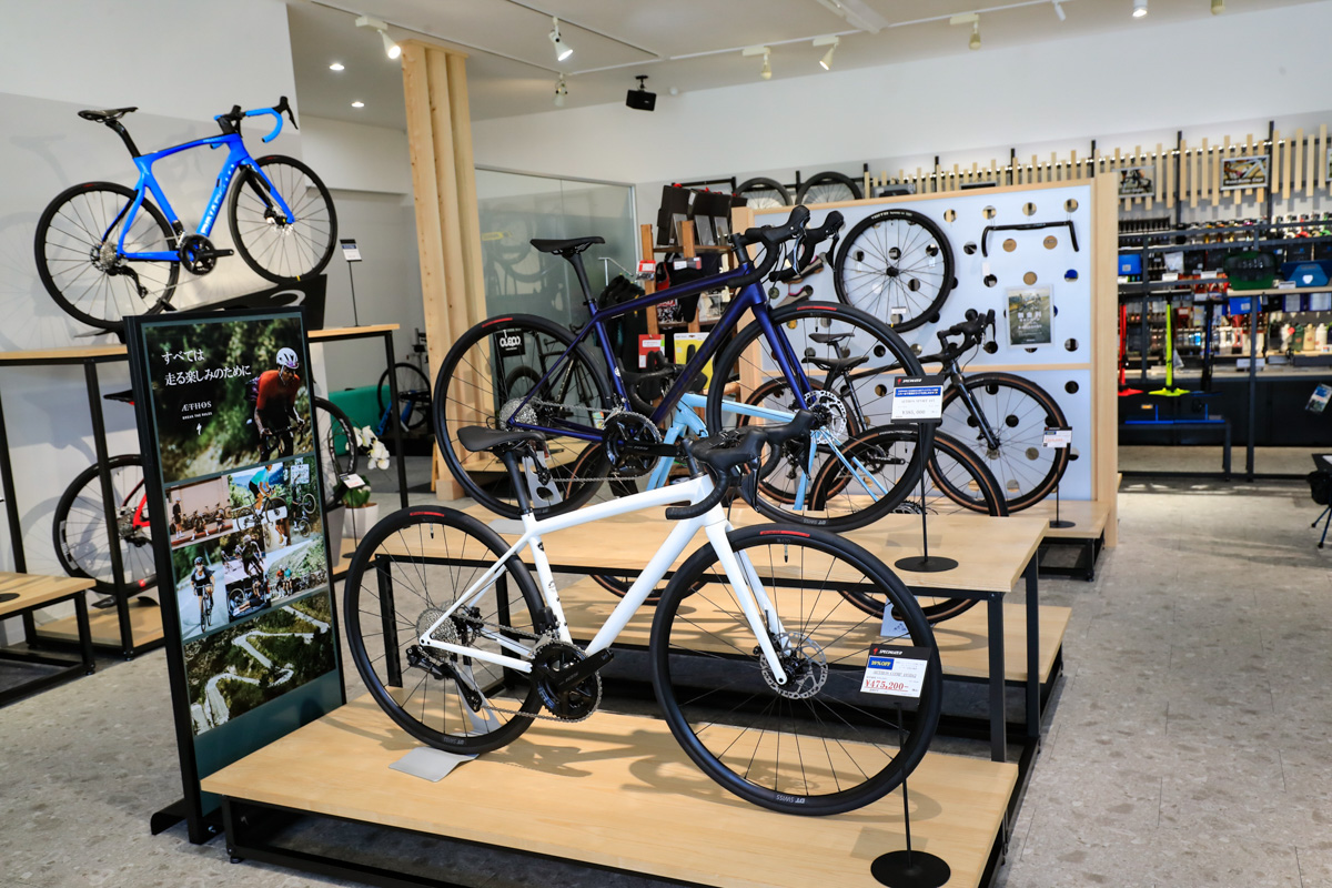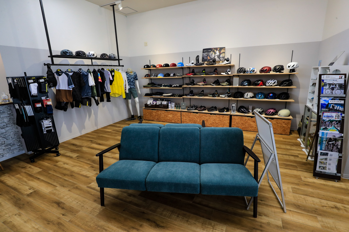 整然とした店舗は清潔感がありつつも、親しみのある明るい空間だ。「ビギナーさんにとって敷居の低い店でありたい」という代表の越智さんの思いから、専門店に入るのが初めての方が感じてしまいがちな入りづらさは一切無い。「スポーツバイクの認知度が上がった影響で、これからスポーツバイクを始めたいと言われる方の来店が多いですね」と越智さんは言う。しかも最近は女性客の方が多い日もあるのだそう。お店の中をまずは気軽に見て回ってもらいたいとの思いから、「いらっしゃいませ」の声がけはあえてしていないという。