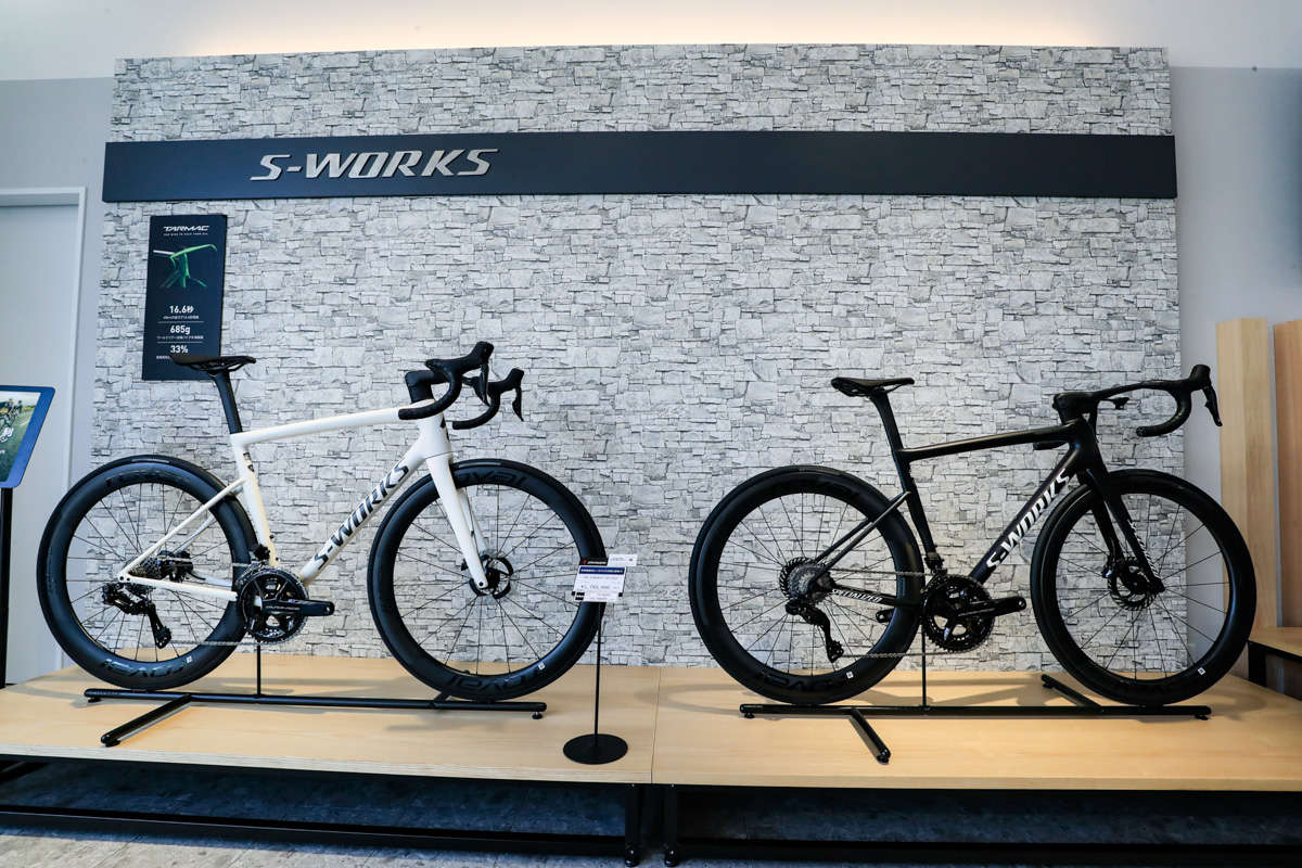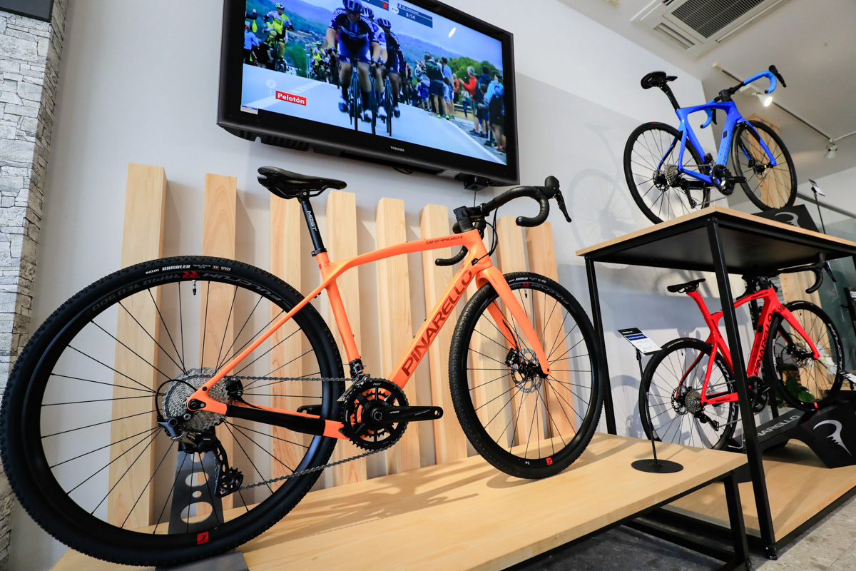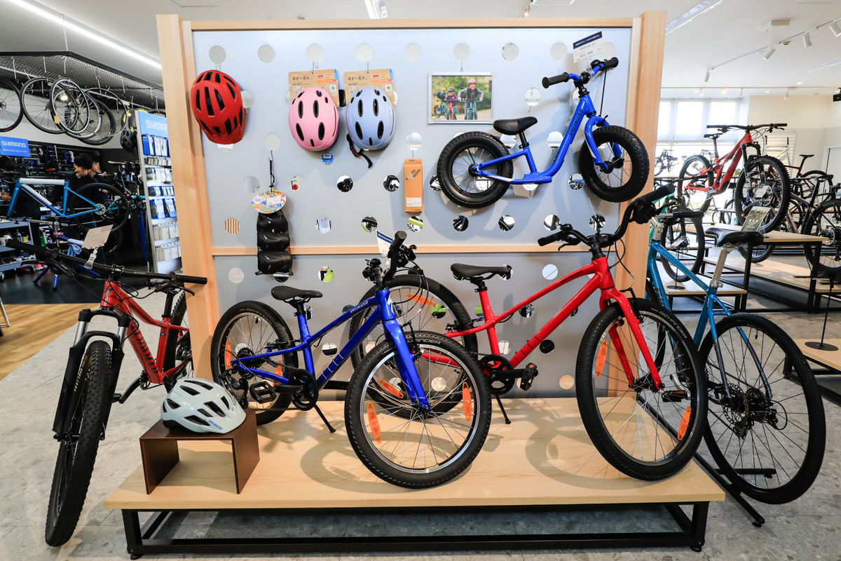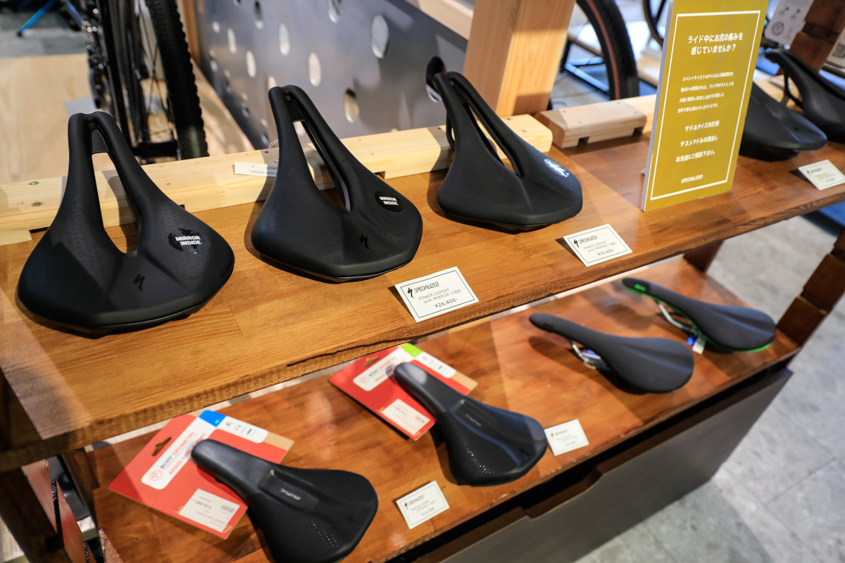 人気のS-Worksコーナーを筆頭にスペシャライズドのバイクが店内の8割以上を占め、ロードバイク、クロスバイク、MTB、グラベルバイク、キッズバイク、小径車などをカテゴリーごとに並べて展示する。ほかにピナレロのロードバイクや小径車のDAHON、KHS、トライアスロンバイクのCEEPO(シーポ)など、特色のあるブランドや車種を生かした展示もある。またオフロードコーナー、グラベルコーナー、トライアスロンコーナーなど、乗り方・遊び方のジャンルを軸とした展示も展開される。スポーツバイクに詳しくなくても、ゆったりした空間で、グレードやジャンルごとに並んだバイクの一台一台をしっかり見て、確かめながら選ぶことができるのだ。