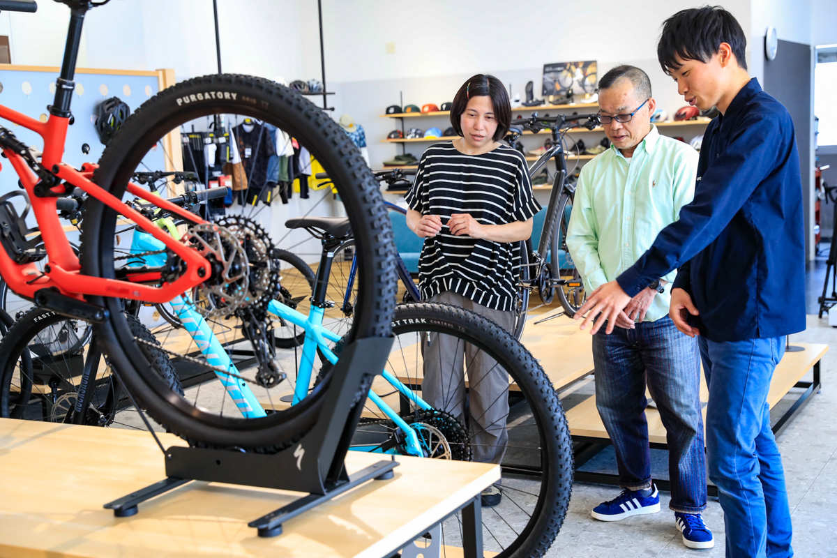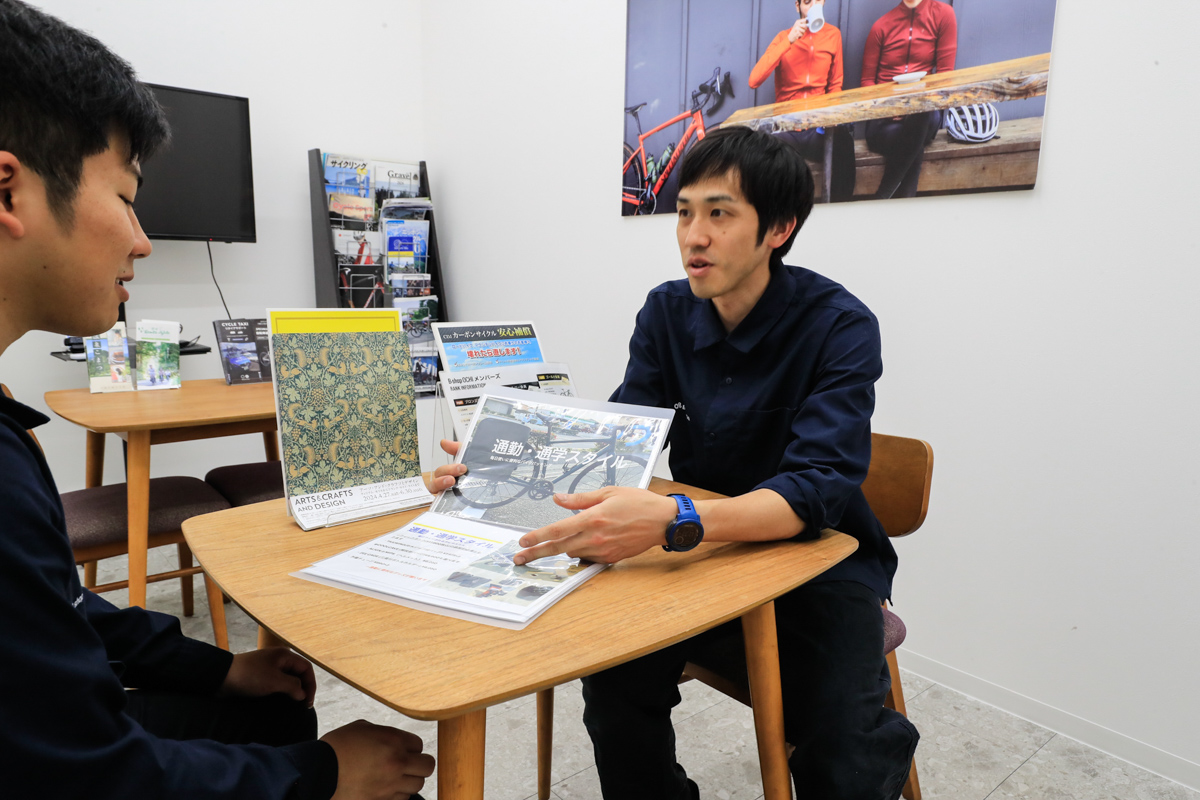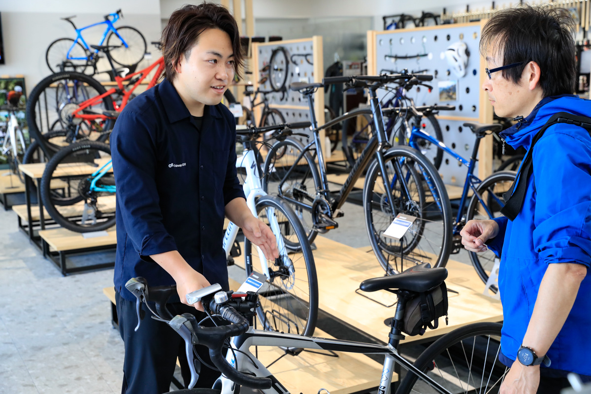 お店に長く居ても快適なのは、ただ店舗空間の居心地が良いからだけではなさそうだ。フランクになりすぎず、適度にフレンドリーで親切丁寧なスタッフとのやりとりが心地良いのだ。「他業界に比べても負けない接客をということで、言葉遣いや立ち居振る舞いなどから見直しているんです」と中田さん。サービス業向けの接客セミナー等に学び、研鑽を積んでいるとのこと。だからスポーツバイクを始めたいという友人を連れて行ったとしても安心してお任せできそうだ。