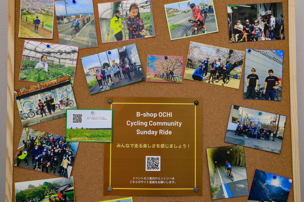 「自転車って楽しいね」をキャッチフレーズにするB-Shop OCHIには、毎週日曜日に実施しているイベント「サンデーライド」がある。STEP1・2・3と、レベルごとに分けてのライドを開催。内容は気楽なカフェライドからロード練習会、MTBライドツアーまで、様々な楽しみを提供している。