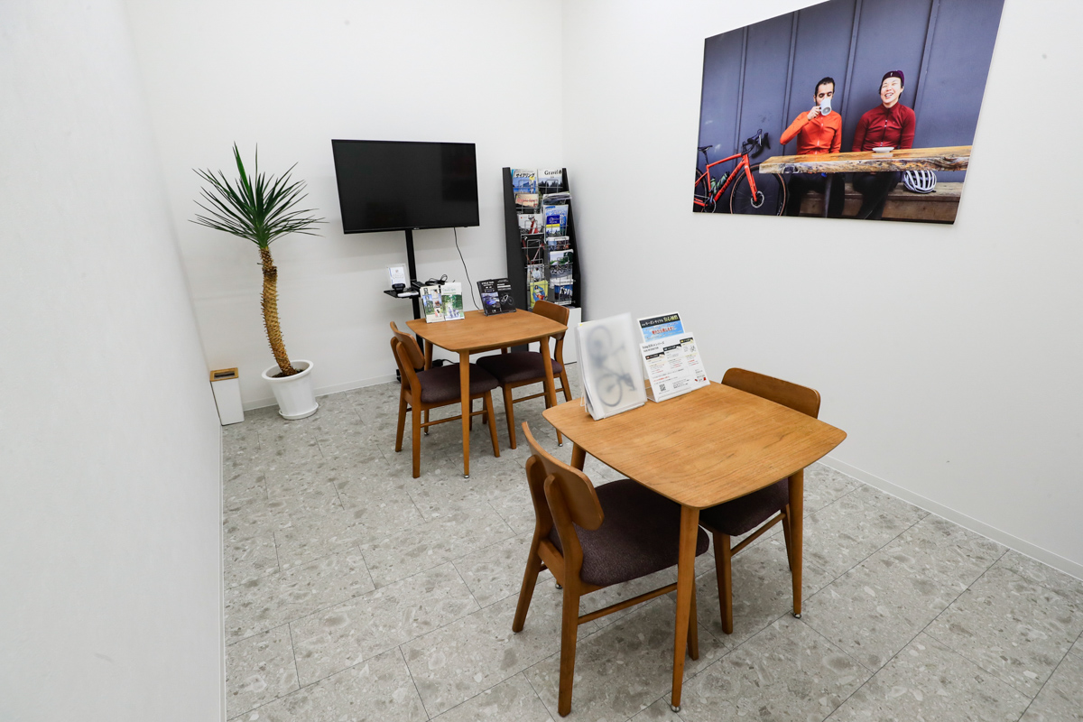 「最近は女性のお客様も増え、ゆっくりと説明を聞きながら自転車を選びたいという方が増えました。またフィッティングも好評で、一人ひとりのお客様に対し、じっくりと時間を掛けてご対応する必要も出てきました。それらを他のお客様の目を気にすることなくできるようにと、パーソナルな空間を設けました」と、店舗リニューアルのポイントを店長の中田さんは説明してくれた。