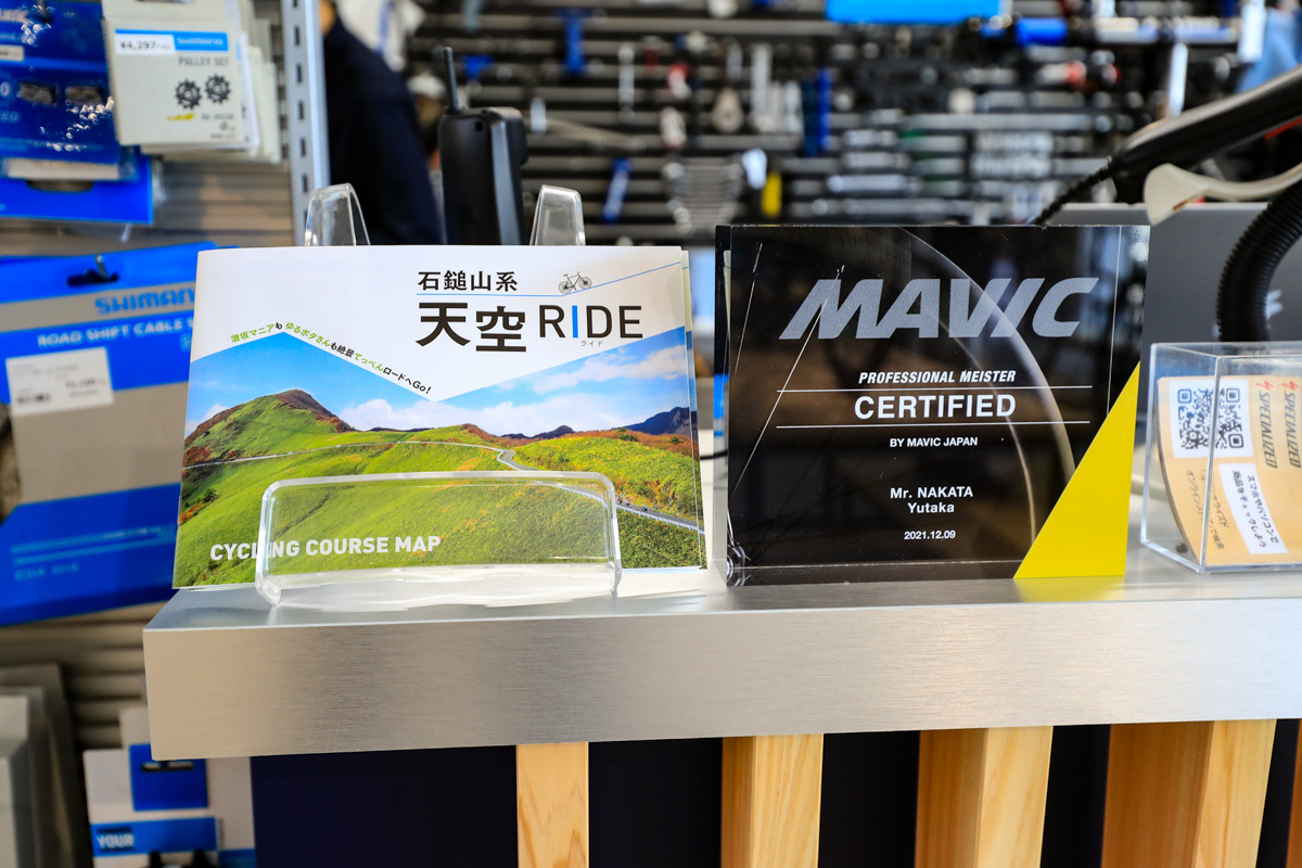 若手の谷さんなどレースも走れるスタッフが居るが、いずれのイベントもレベルが高くなりすぎないように、初心者でも参加しやすいように設定しているという。ホームページにはイベント告知ページがあり、お店で自転車を購入した方でなくても誰もが参加可能だという。「西条はUFOラインの入口として有名ですから、いずれは皆さんとご一緒に走りに行きたいですね」と中田さん。
