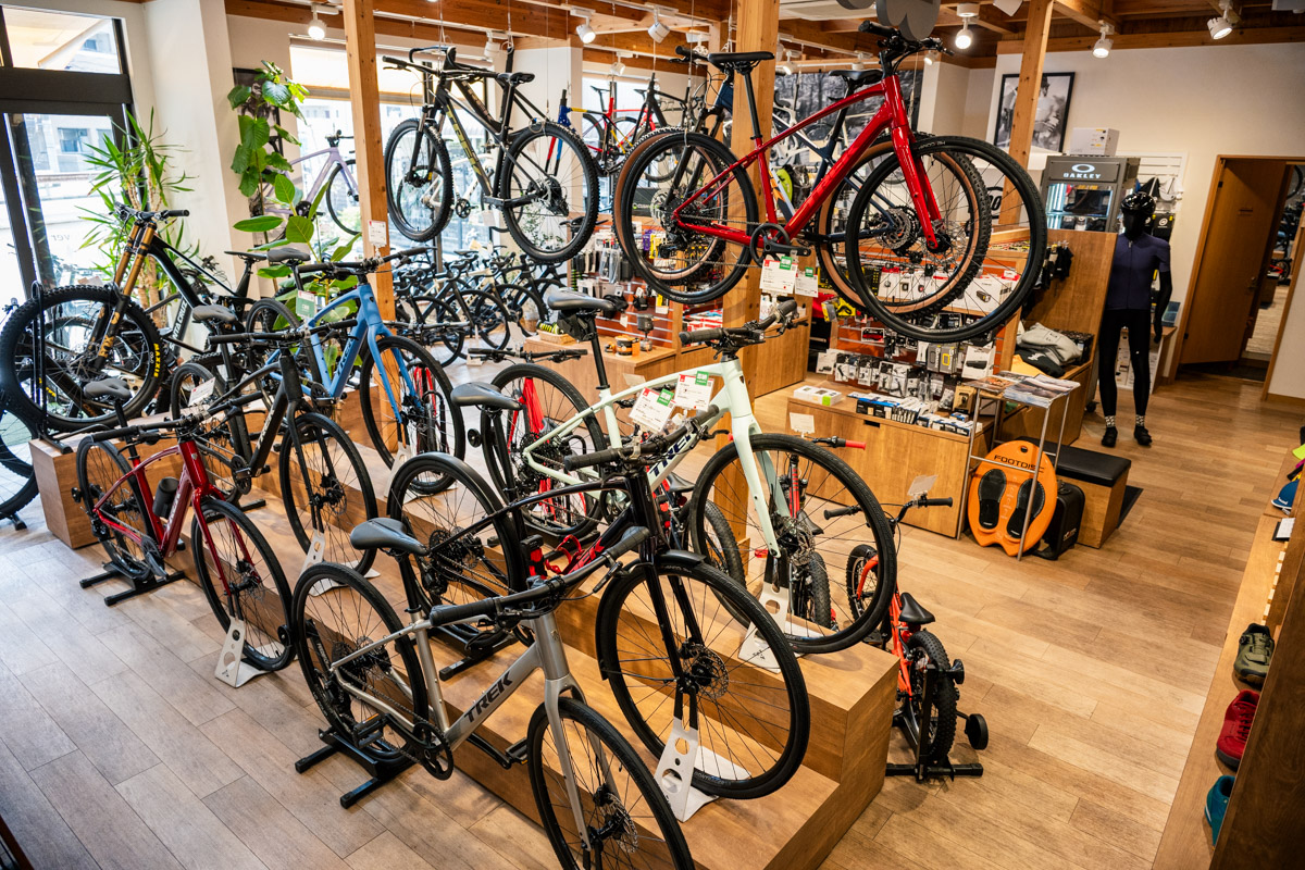 ロードでは、サーヴェロやオルベアを加え、極限のエアロや軽量性を求める声に応え、MTBではオルベアやサンタクルズなどグラビティ系に強いブランドを展開。特に豊富なのがE-MTB。「E-MTBはその年ごとに当たりブランドが違ってきます。なので、MTBに関してはモデルイヤーごとに本当にオススメできるブランドを入れ替えていますね」と柴谷さん。