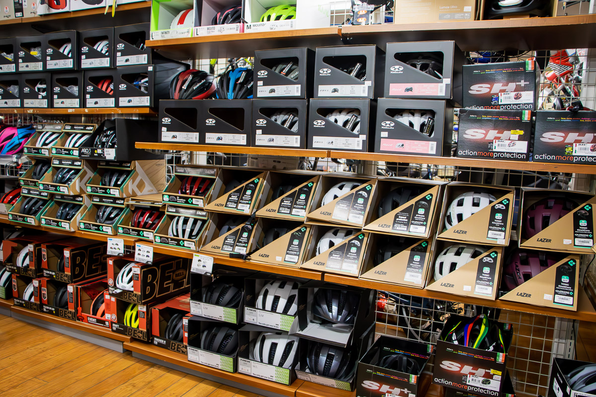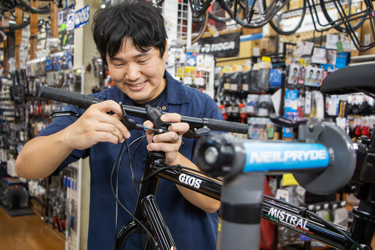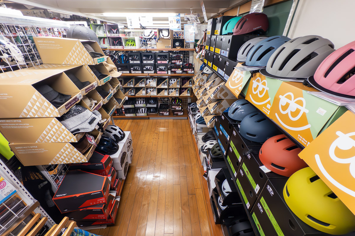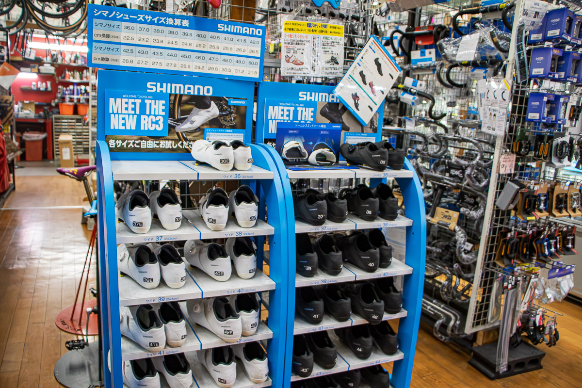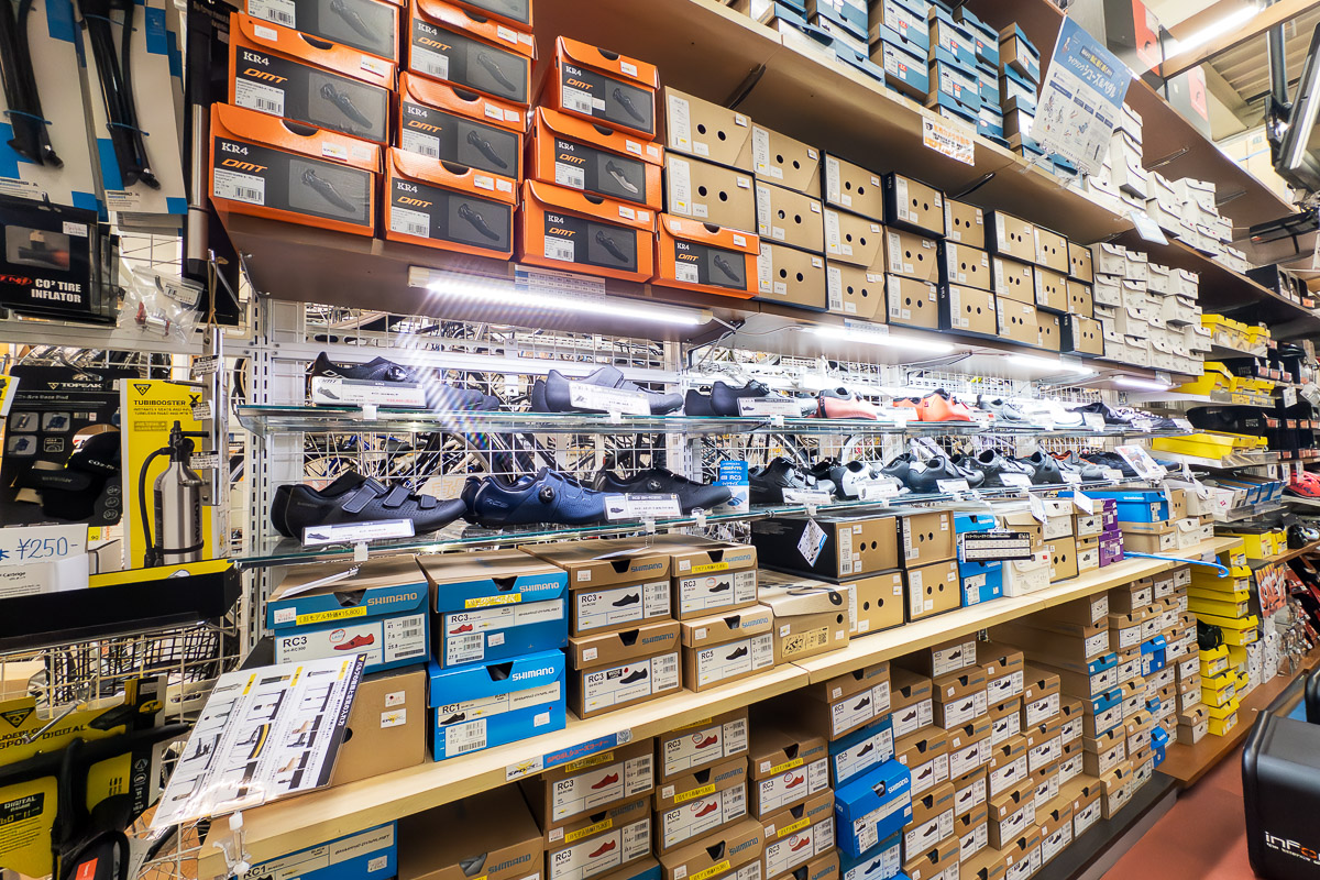 取材時には、飯島店長が初めてビンディングペダルのデビューを考えている方に懇切丁寧に接客している姿も。膨大な在庫に加え、シマノシューズエクスペリエンスコーナーも設置していることもあり、シューズのフィッティングはお手の物。サイズ感を判断してくれるだけでなく、ビンディングシューズの履き方、足への合わせ方という根本的な部分から時間を惜しまず説明されていた。それも全て、より楽しいサイクリングライフを送ってほしいという想いがあればこそ。「スポーツバイクに初めて触れる方が、自転車と一緒にサイクリストとして成長していくためのお手伝いをするのが、私たちの使命です」と、飯島店長は語る。