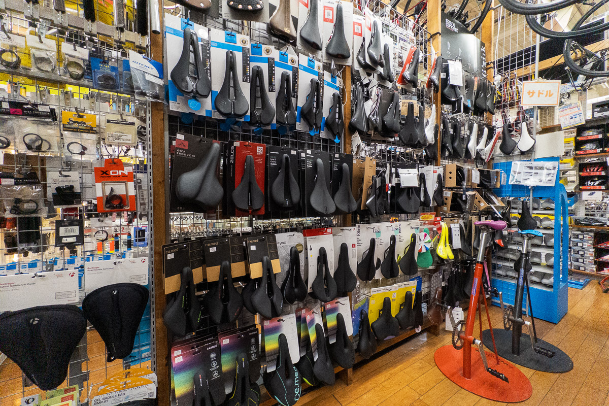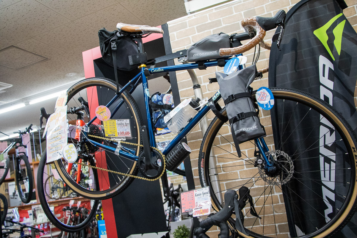 ここ最近、スタッフ間で流行っているのはグラベルライドや、バイクパッキングでのソロキャンプだそう。それは品揃えにも反映されていて、バイクパッキング用のシートバッグやフレームバッグ、そしてそれらを装着したグラベルバイクも展示されている。「セオ新松戸=走り屋」というイメージは古いのだ。ビギナーから玄人まで、誰しもを納得させるこのできる頼れるスタッフがあなたの来店を待っている。