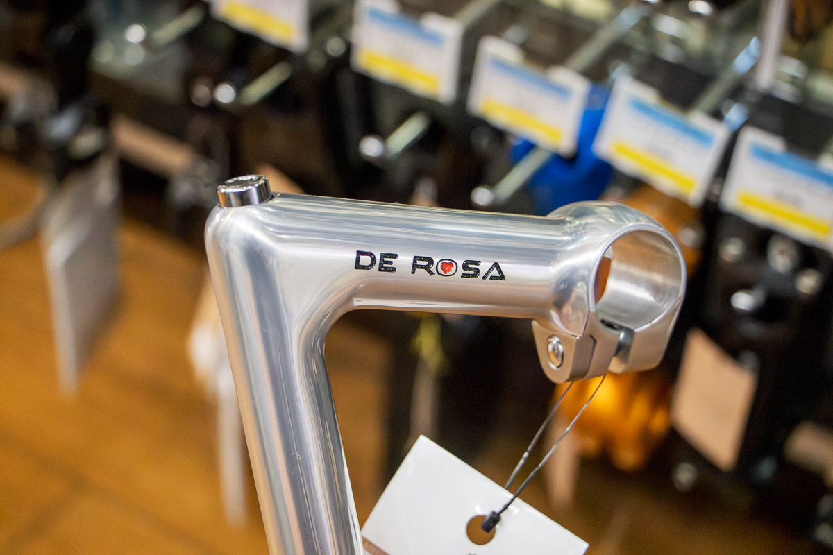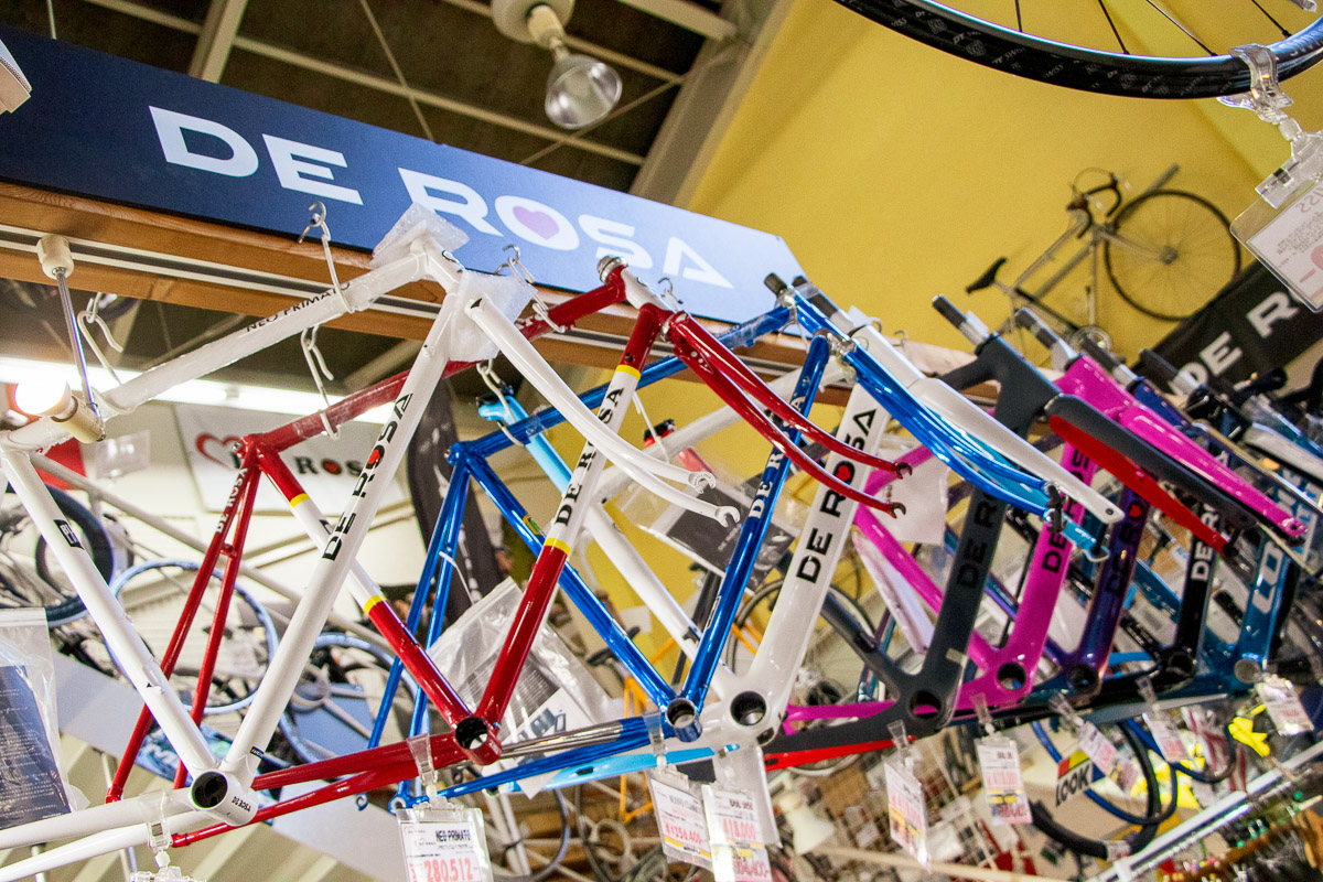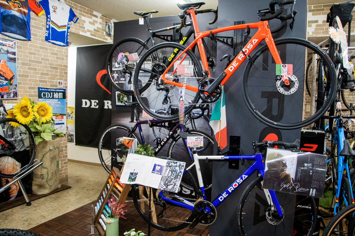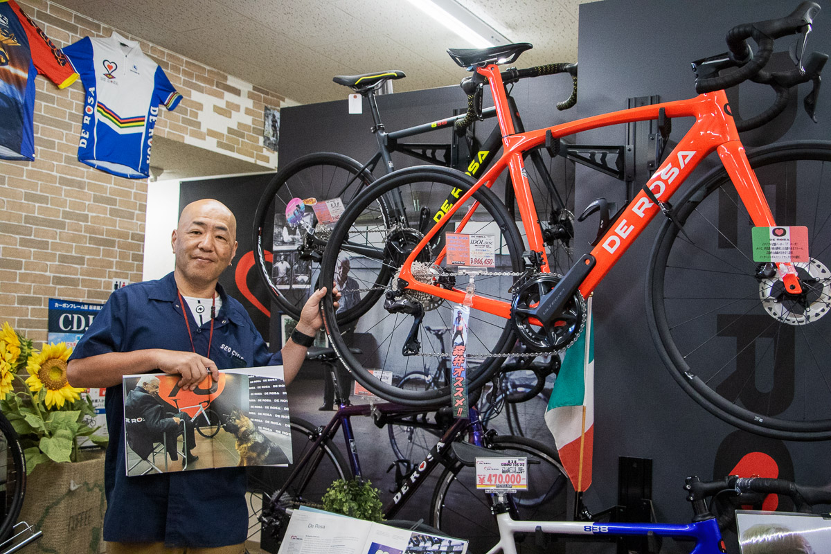 ヨーロッパブランド、アメリカンブランド、アジアンブランドなど、様々なブランドを取り扱い、店舗にディスプレイするバイシクルセオ新松戸店が最も得意とするのはイタリア御三家の一つであるデローザだ。それは森井さんがデローザを心から愛してやまないから。愛すること以上に、理解を深める術はなし。古いものから新しいものまで、その知識と経験は広く深い。店内に飾られているビンテージデローザはかつて森井さんが乗っていたものだし、店先の看板についた「デローザ」のロゴも、一途なデローザ愛を表現するメッセージ。