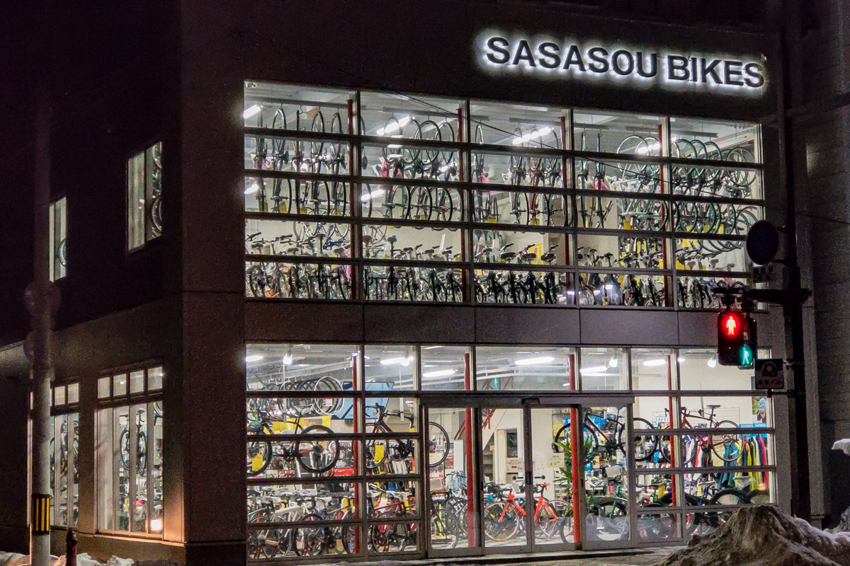 店舗の場所は創業当時から変わらないが、それまで盛岡で2店で営業していた店舗を統合してSASASOU BIKESと名を変え、現在のモダンな建物になってはや9年が経つ。冬は寒い盛岡であるが空調完備で暖かく快適な店舗に生まれ変わり、冬でもしっかり時間を掛けて店内を見て回れるようになった。