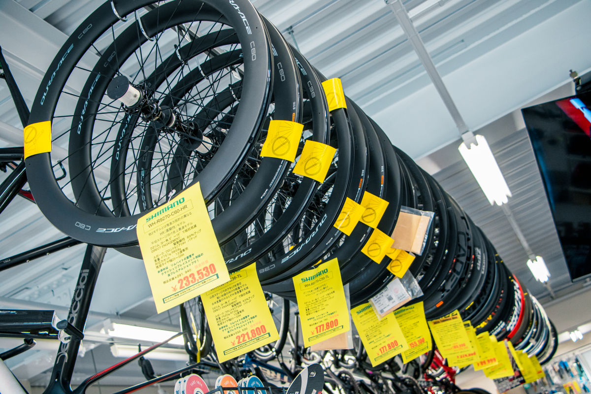 「各ブランドごとにラインナップをなるべく多く在庫しておきたいですね。ロードバイクなら20万円代前後が多く売れるゾーンですが、100万円を超えるようなバイクもなるべく店頭に陳列しておきたいんです」と佐々木さん。カタログスペックだけでは分からない、技術の粋を集めたハイエンドバイクを実際に見てもらいたいのがその理由。数が売れるものではなくても、選択肢を提供し、そして実車で見比べてもらうために。スポーツの道具として価格以上の走りの違いを知ってもらいたいという考えだ。リスクを減らすために在庫を減らすショップが多いなか、異例の方針だ。