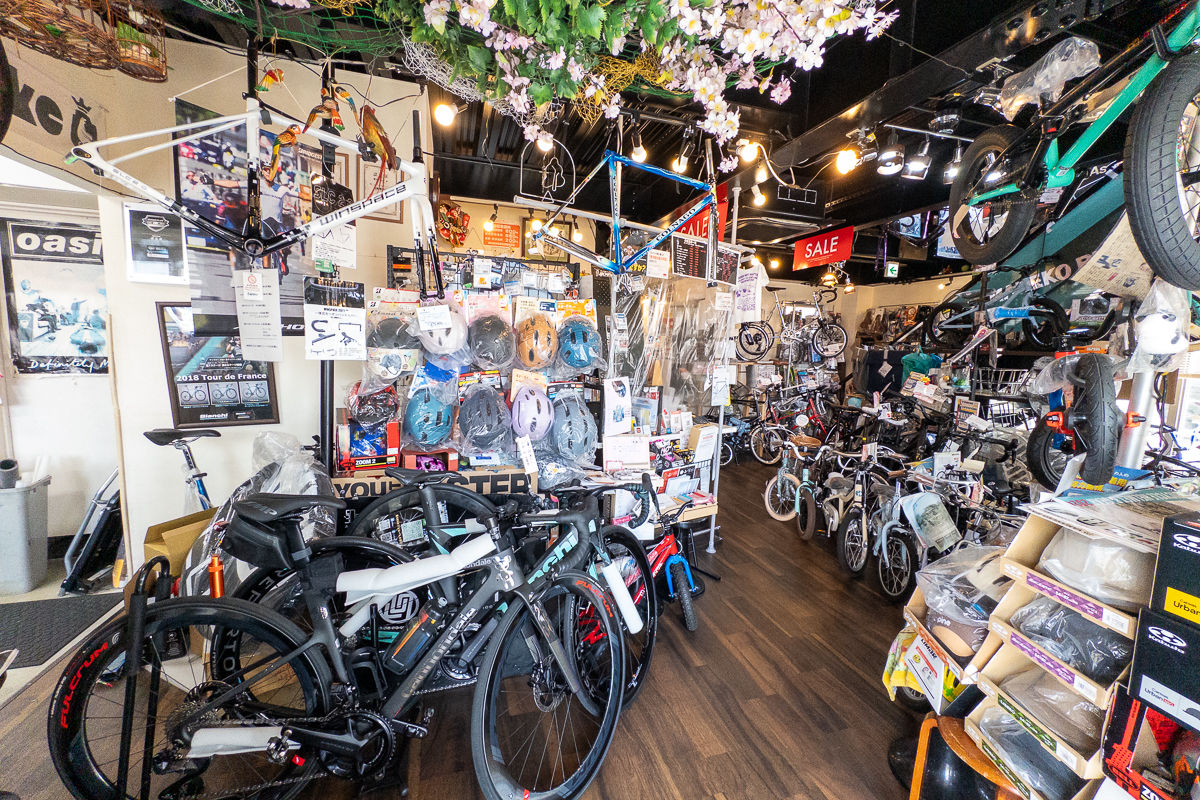 そう、東海地方でも有数の取り扱いブランドを誇るのがサイクルショップポパイの大きな特徴。キャノンデールやトレックなどの北米ブランド、ピナレロやコルナゴ、ビアンキ、ルックをはじめとする欧州ブランド、もちろんジャイアントやメリダ、アンカーといった定番どころに加え、BMCやエディメルクスといった名古屋に縁の深いブランドもしっかりとカバーしている。そして、ここ数年ではウィンスペースなどコストパフォーマンスに優れたブランドの姿も。