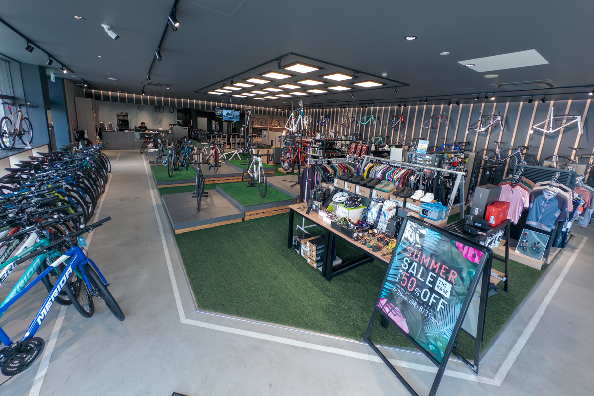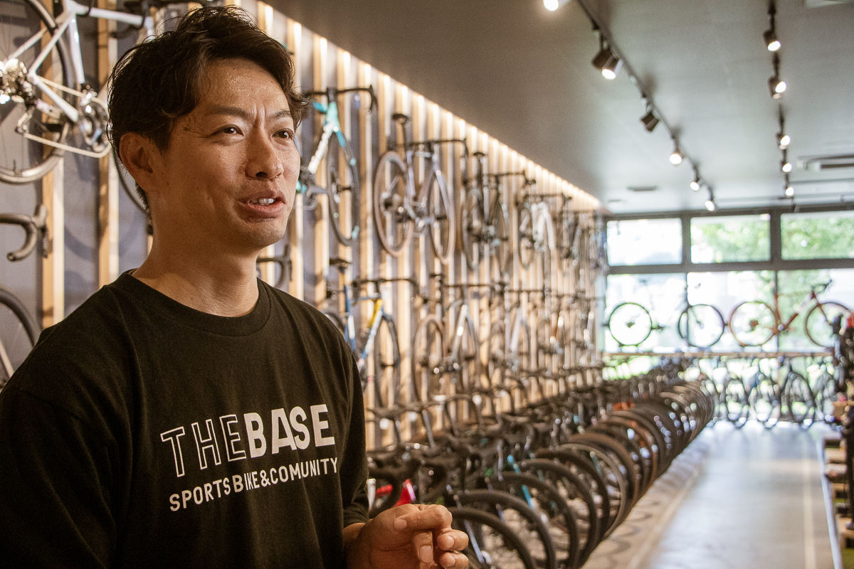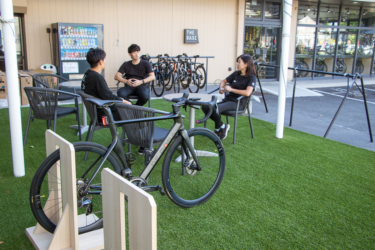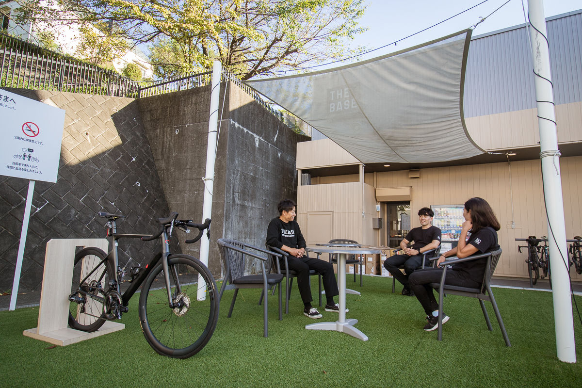 「そこから約30年経って、自転車への理解、文化、環境も整ってきて、今再びスポーツバイクに力を注ぎ自転車の楽しさを伝えようと。当時のあさひも地域のサイクリストが集うコミュニティスペースとしての役割を担っていて、その思いと根幹は変えずに現代の形に落とし込んだのが、この”THE BASE 南大沢店”なんです。」