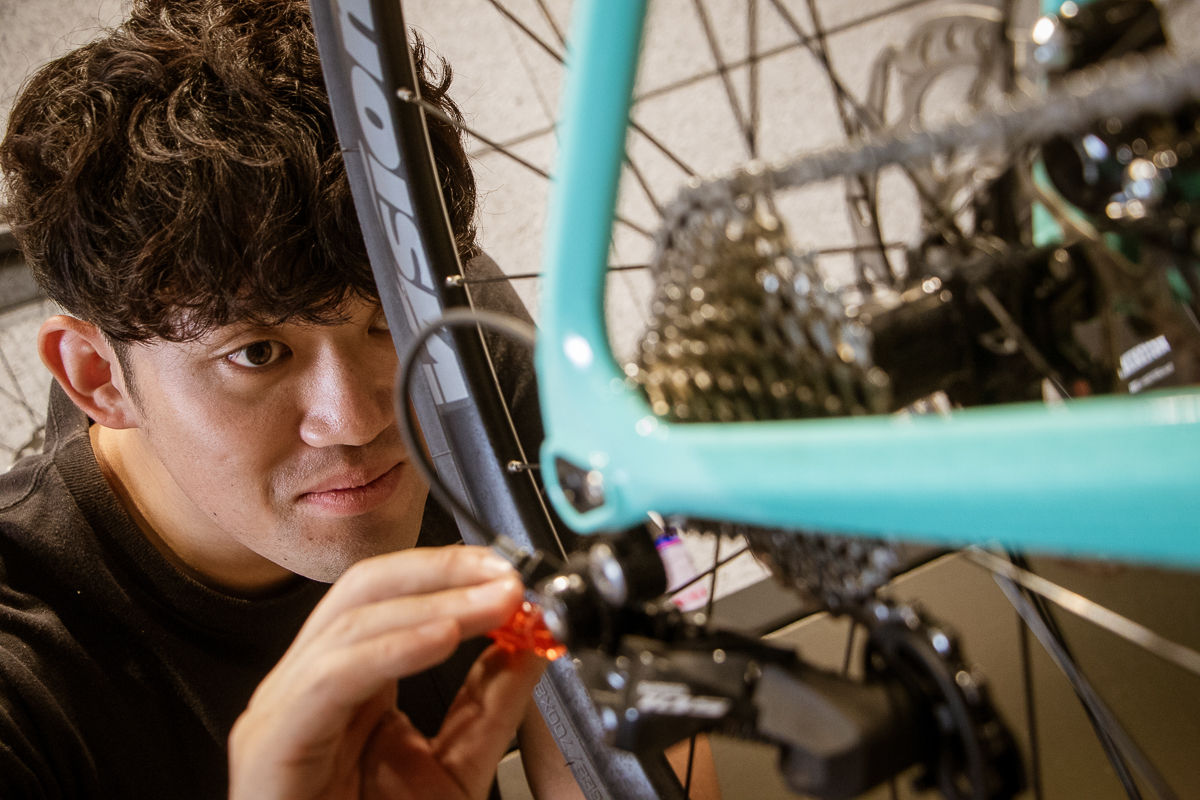 THE BASEを形にするにあたり、そのコンセプトはハッキリしていたとも。「既存のプロショップは専門性が高い分、気軽に入れないような雰囲気がありますよね。今スポーツバイクに乗られている方も、最初は勇気が要ったと思うんです。私たちはそのハードルを取り払いたかったんですよ。どんな方にも開かれたお店、入るのに躊躇うことのないお店。それはあさひに根付いたカルチャーで、THE BASEでもその強みは活かすべきだと考えていたんです」。つまり、国内最大の自転車チェーンならではの間口の広さと、プロショップらしい専門性という、相反する2つの要素を融合させたのが、このTHE BASEということ。