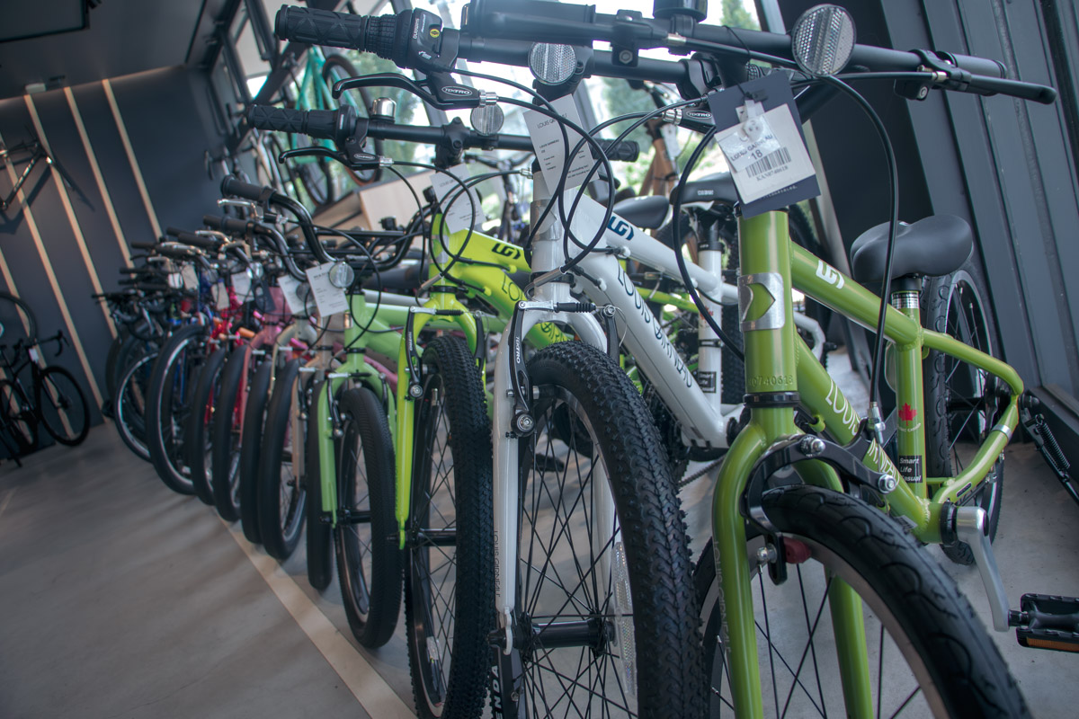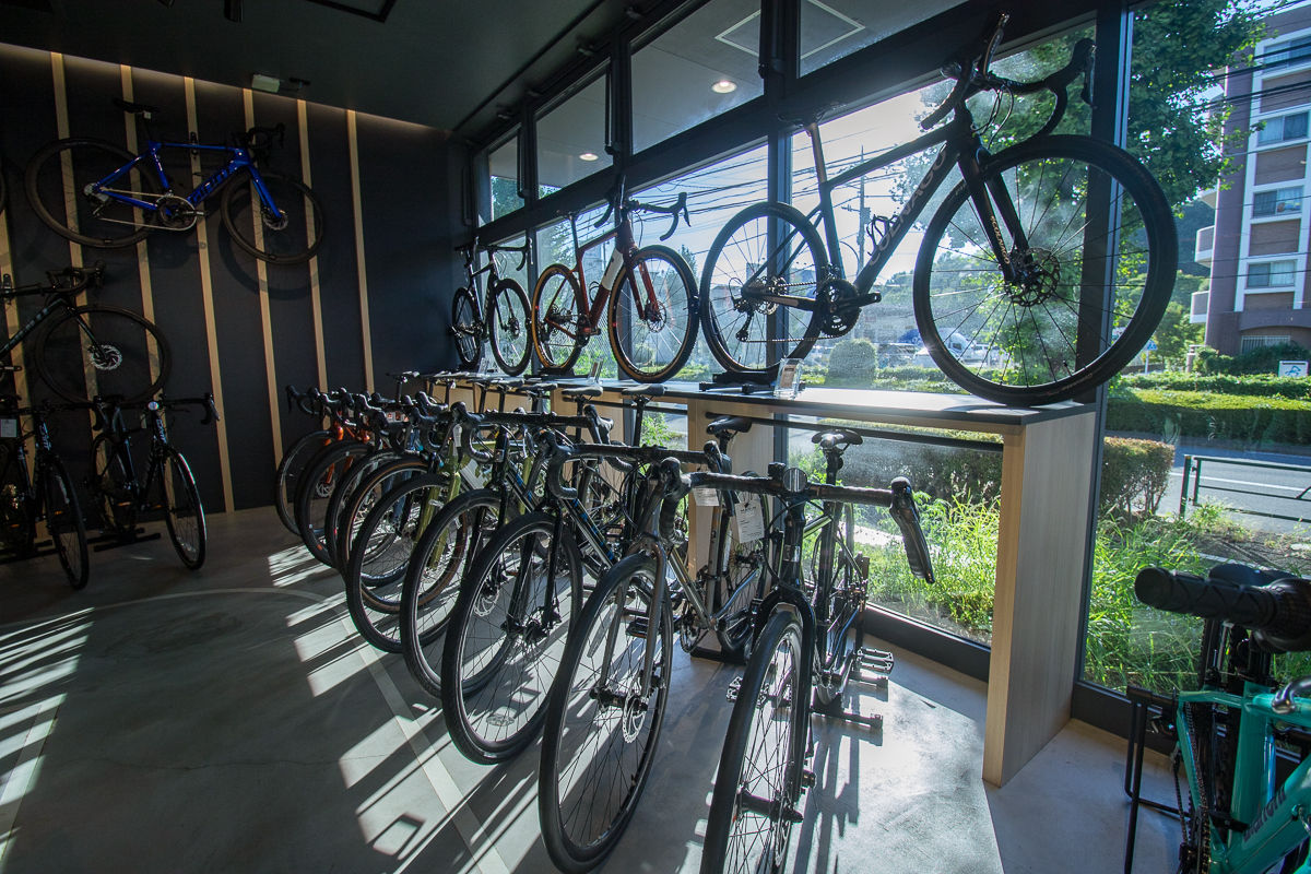 インダストリアルなデザインの建物は、一見自転車屋に見えないほど。店内に入っても、広々とした空間に自転車の姿が良く見えるように適度な空間を保ってディスプレイされており、自転車がギッシリ詰め込まれた古き良きプロショップとは一線を画す、モダンで明るい雰囲気に満ちている。
