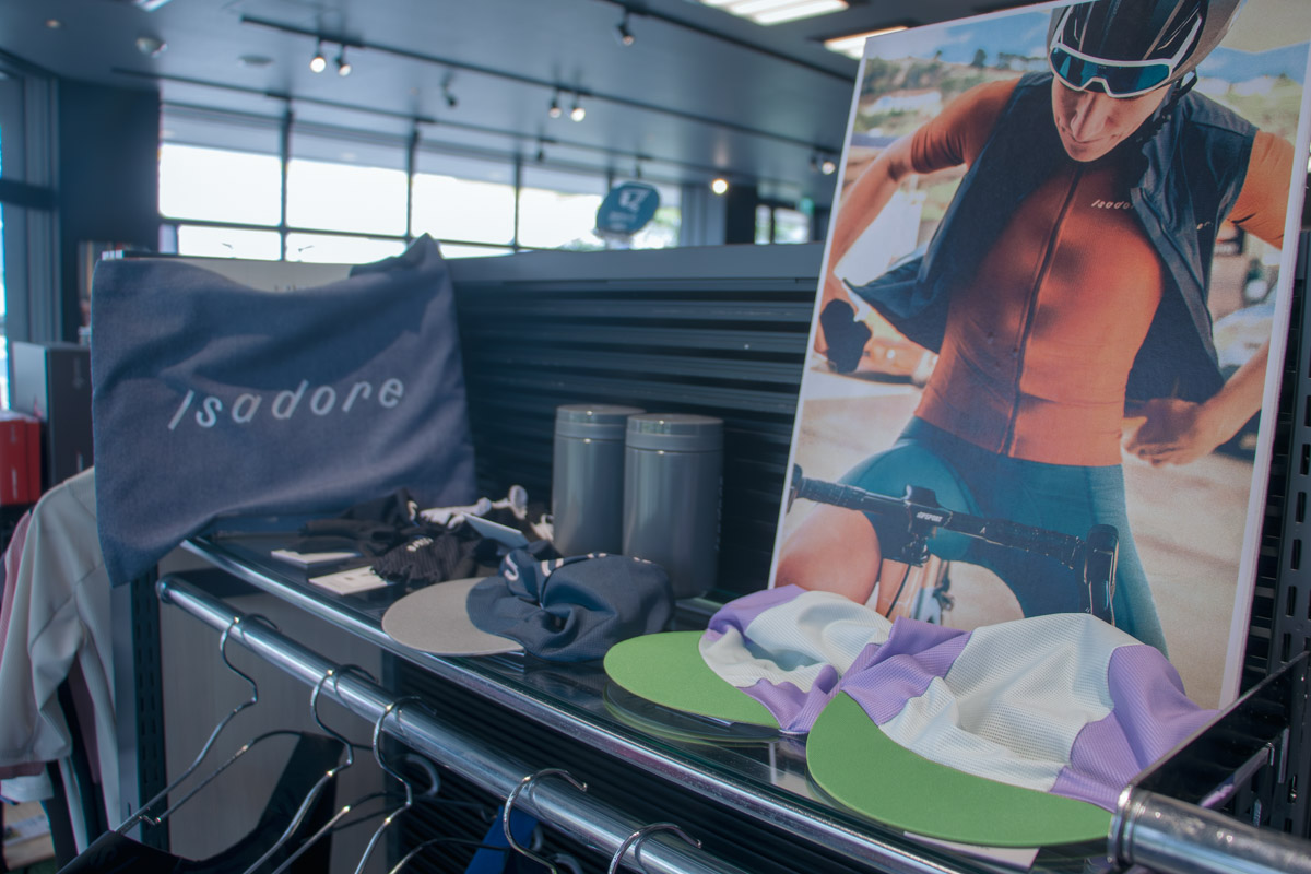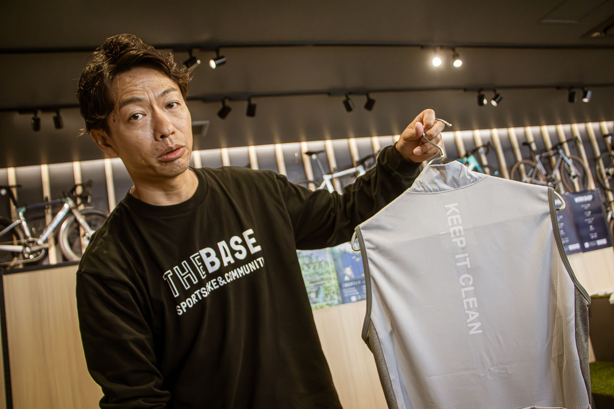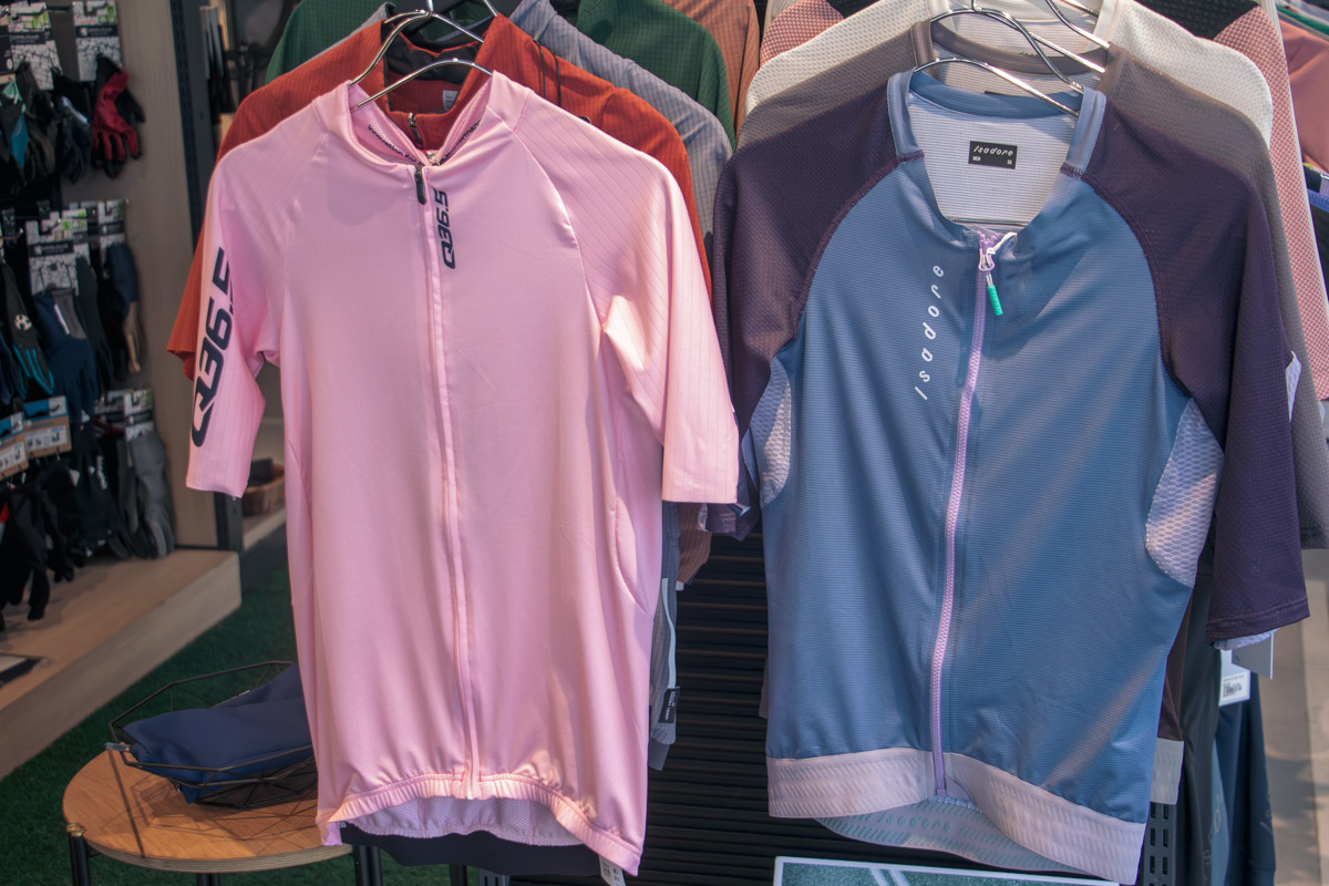 中でも象徴的なのがアパレルコーナーだ。THE BASEがメインに取り扱うのは、イザドアとQ36.5という2つのブランド。サイクルショップの多い東京にあっても、なかなかお目にかかることの出来ないウェアたちが、センス良くレイアウトされている。それぞれの特徴について、「レーシーな走り方をするのであればQ36.5を、イザドアはよりカジュアルな雰囲気で楽しみたいという方にオススメしています」と教えてくれた。また、随時新たなブランドを手掛けることもあり、その動向からは目が離せない。