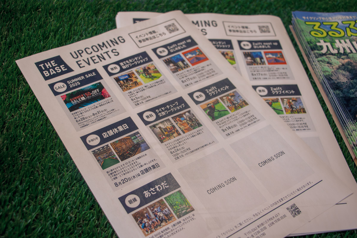THE BASEを語る上で外せないのが、様々なイベントだ。ライドイベントはもちろんのこと、講習会やワークショップ、写真展など、多岐に渡る企画が毎週開催されている。ライドイベントひとつとっても、そのバリエーションは非常に豊富。いわゆる「練習会」的な峠ライドから、グルメを求めたポタリングまで幅広い。中には、三ヶ島ペタルの工場見学ライドなんて、個人で楽しんでいるだけではなかなか体験できないようなイベントもあり、その企画力の高さには舌を巻く。