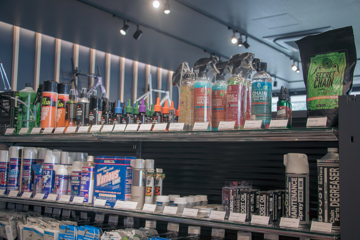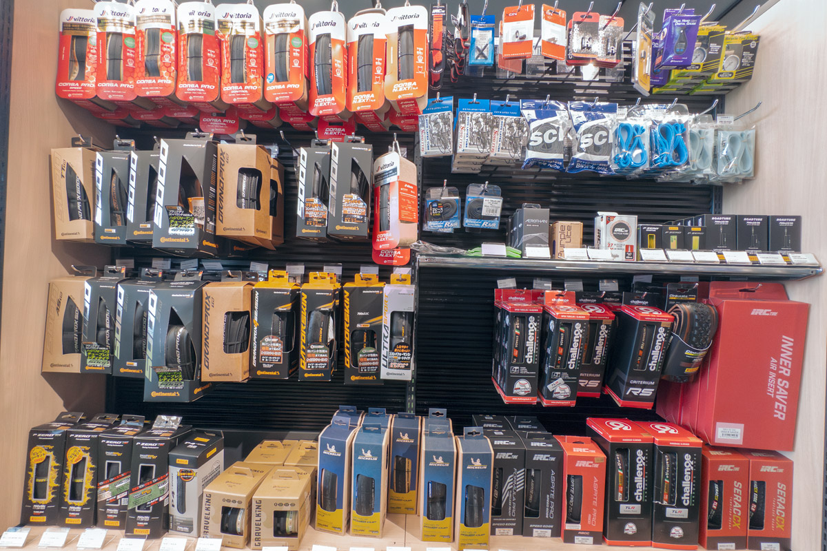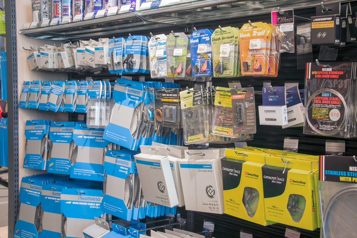 そうそう、ちなみに値札が無いのは自転車だけで、パーツやアクセサリーにはしっかりと値段表示はされているのでご安心を。そして、その品揃えは幅広く、奥深い。当然のように一通りの定番商品が揃っているだけでなく、他のショップでは見られないような製品もかなりの割合を占めている。