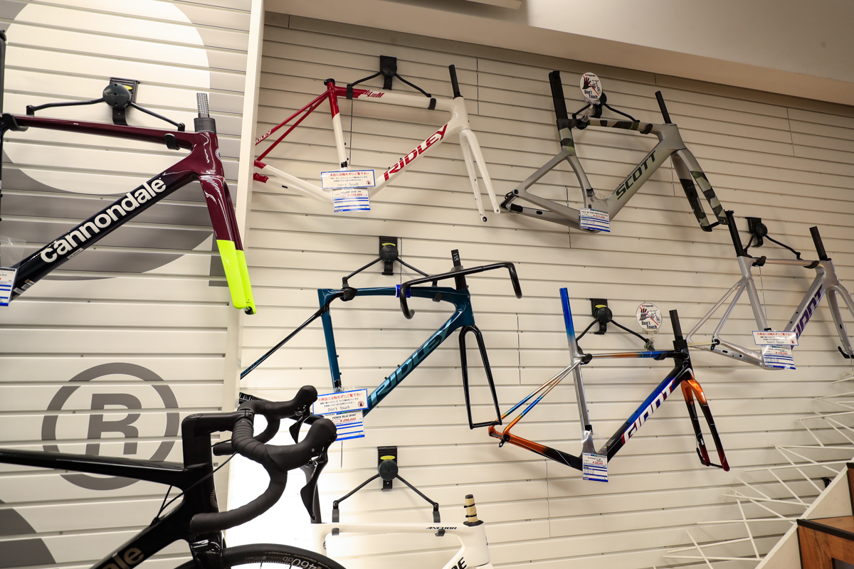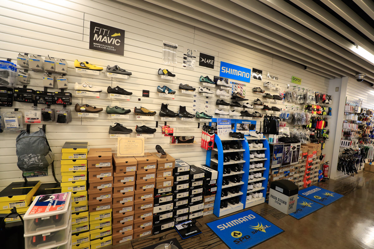 サドルコーナーにもセライタリアやフィジークをメインにテストサドルが用意され、1週間レンタル貸し出しが可能だ。そしてシマノ製シューズに関しては全サイズの試着が可能な「シマノシューズ・エクスペリエンスセンター」にもなっており、ノーマルとワイドの全サイズを常時試すことができる。