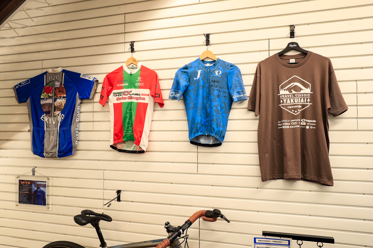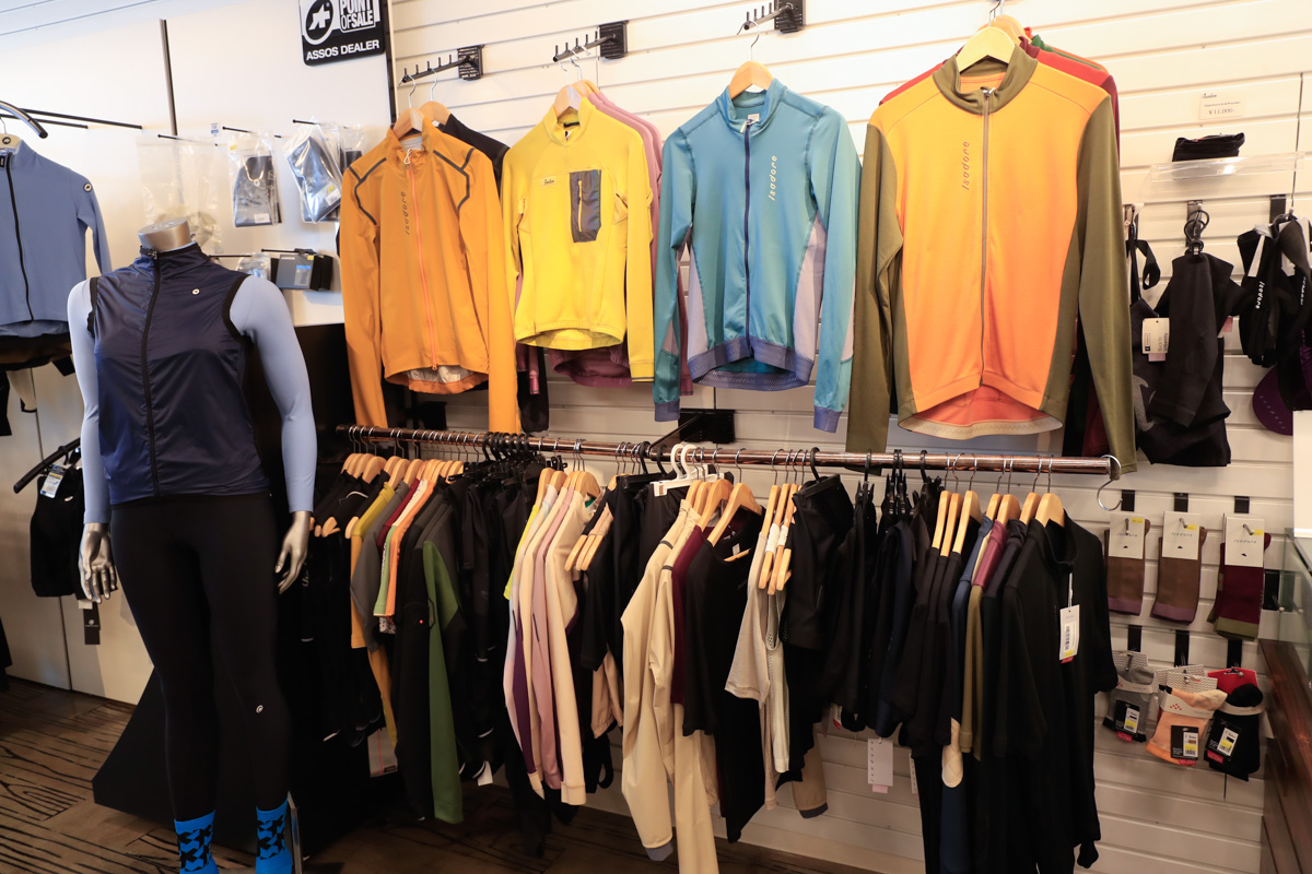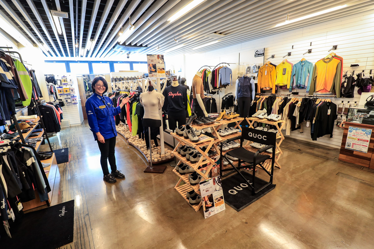 「ここ2年ほど走れてないですが」と謙遜する菅原さんだが、ロードだけでなくMTBやシクロクロスなどマルチにライドを楽しむサイクリストであり、着こなしのコツや使い込んだときの性能差、着心地や耐久性なども説明できるのが持ち味。もちろん女性ならではのアドバイスも期待できる。充実した在庫やサイズラインアップから選べるためか、わざわざ隣県や北関東や北海道からも来店してくれるお客さんも多いという。