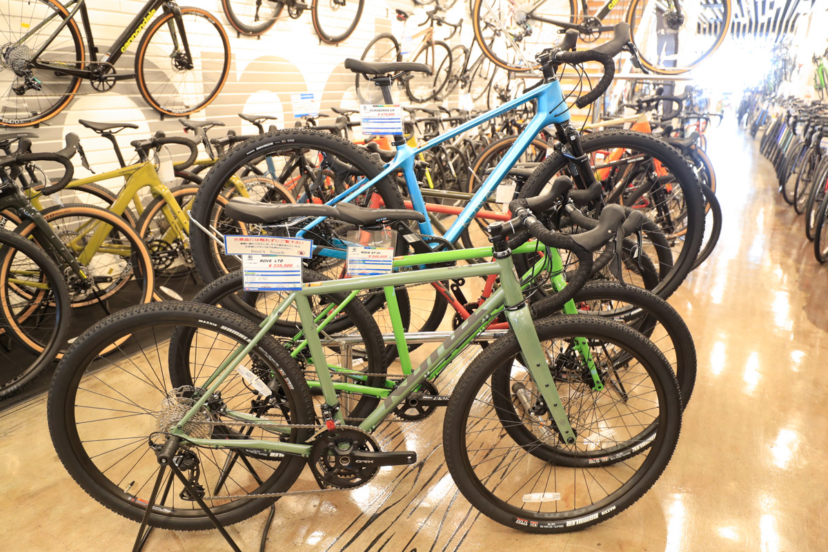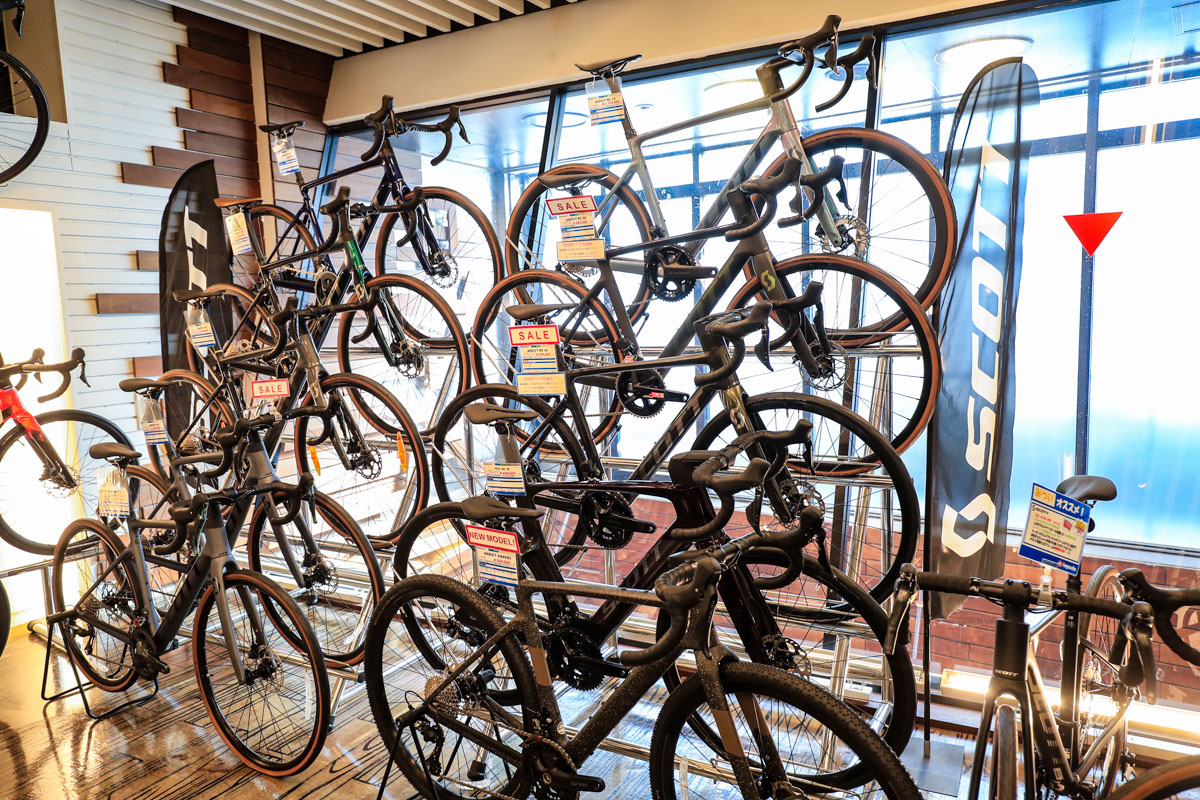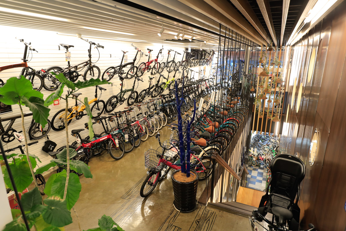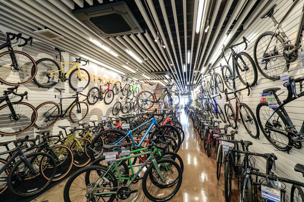 各フロア60坪、総計約240坪という広い売り場に、オールジャンルの膨大な在庫車数で誰でも欲しい自転車が手に入る。的確な商品知識を持ったスタッフからアドバイスを受けながら選べる商品点数と、サービスについても万全。初心者から上級者にまで教えてくれる提案力が高いショップだ。