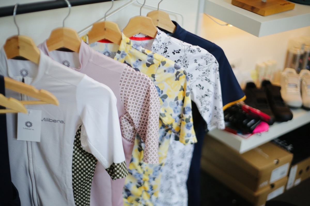 内藤さんが企画するMiliberaのウェアは、きちんとイタリア製で、デザイン性だけでなく、走行中の快適さや日焼け対策、体型への配慮にも徹底してこだわっている。「ウェアがかわいいから始めてみたい、という動機でいいんです。自転車の世界って、まず見た目や気分から入ってもいいと思うんですよね。その最初の扉をもっと広くしたい」と内藤さんは言う。